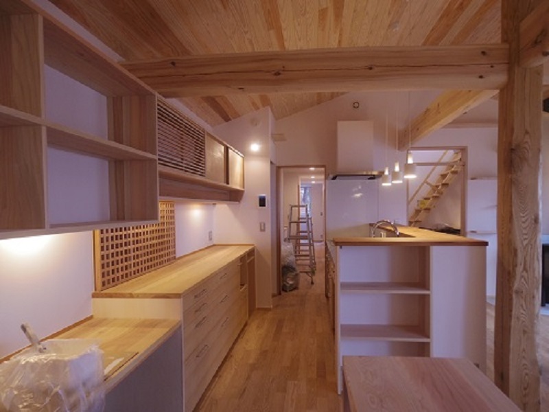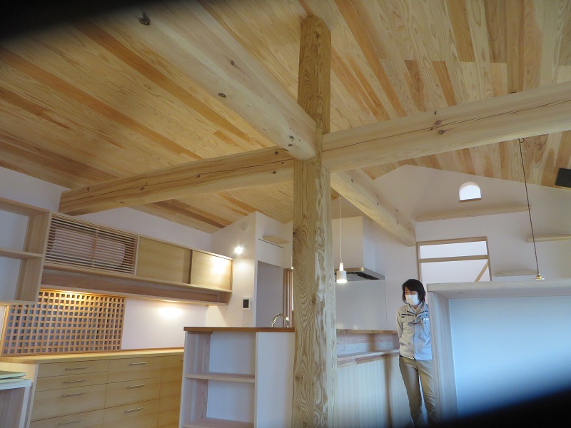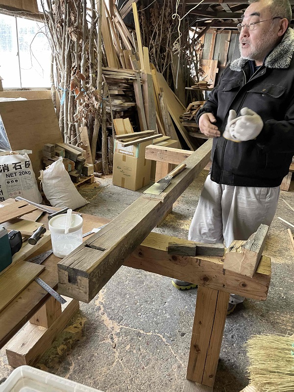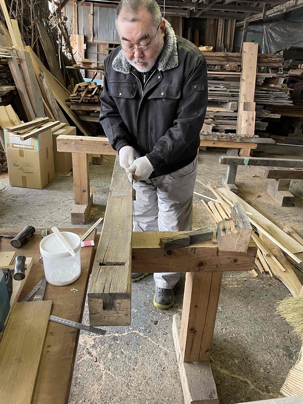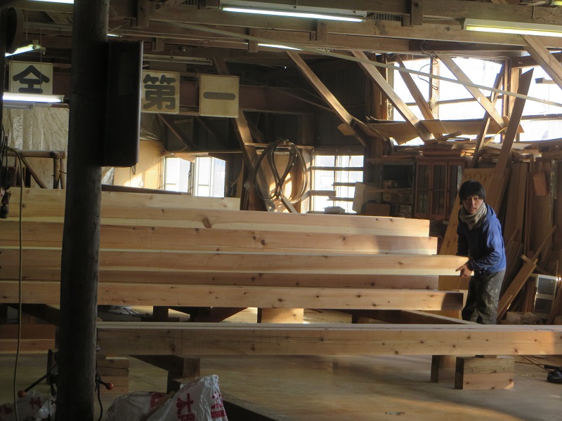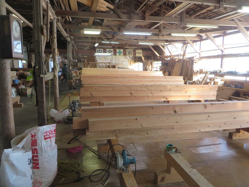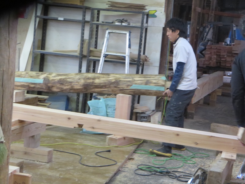 こうして古材も新たな住まいを支えていきます。(栗城)
