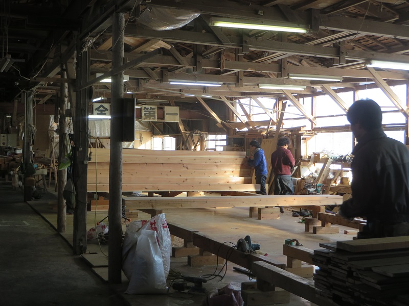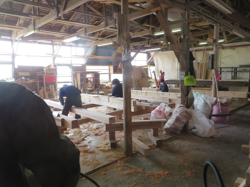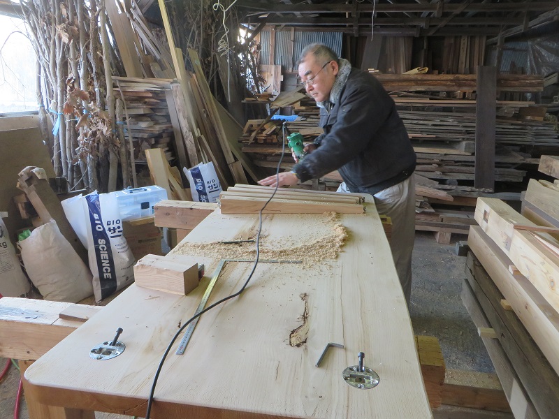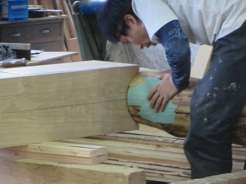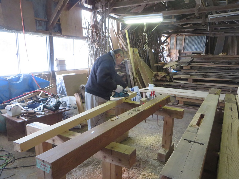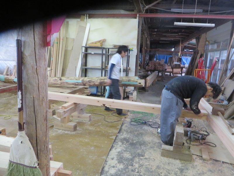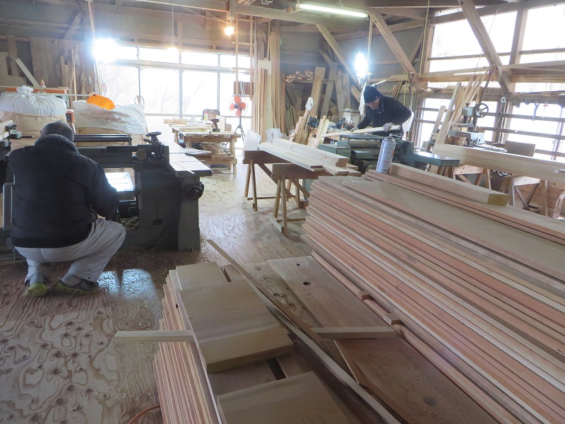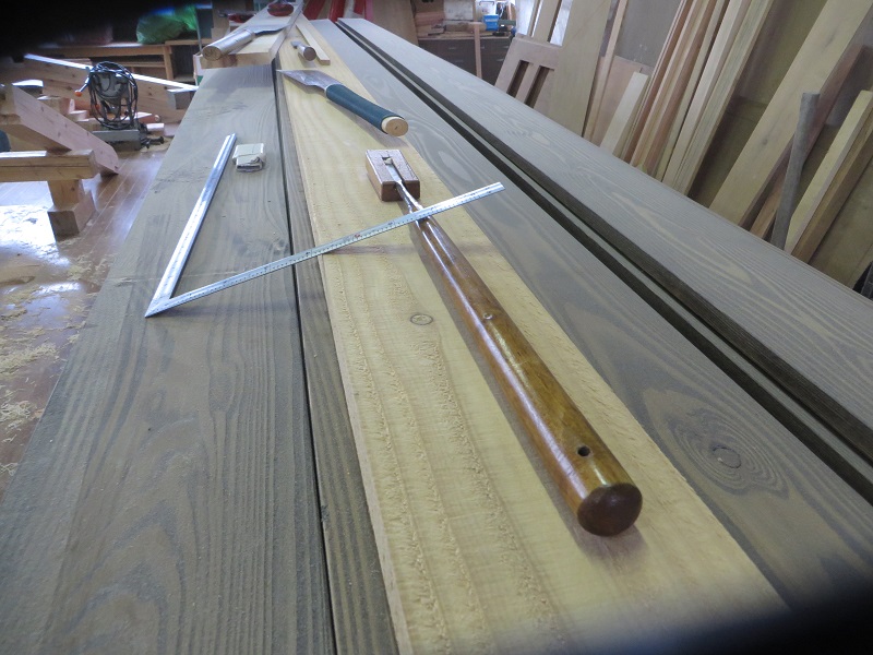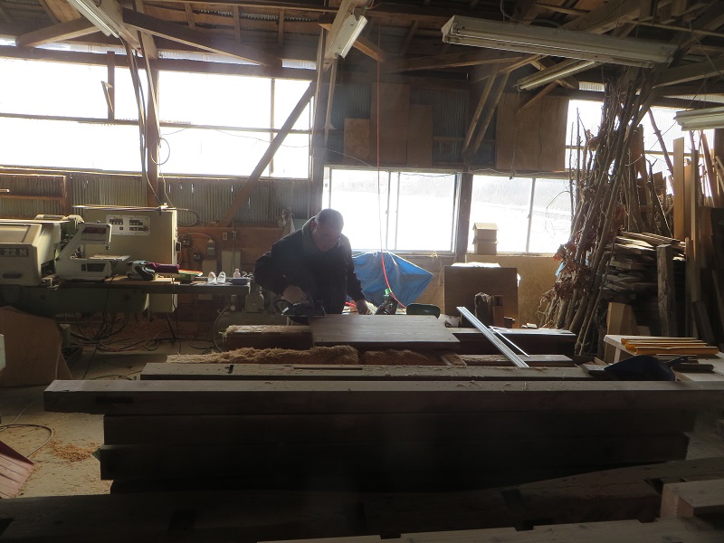 先週までは静かだった作業場が俄かに活気づいてきました。若手大工による手刻みが再開しただけではなく、熟練職人の造作材加工や家具造り建具造もガンガンと取り組まれています。