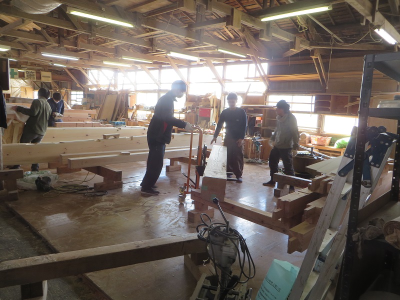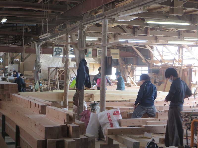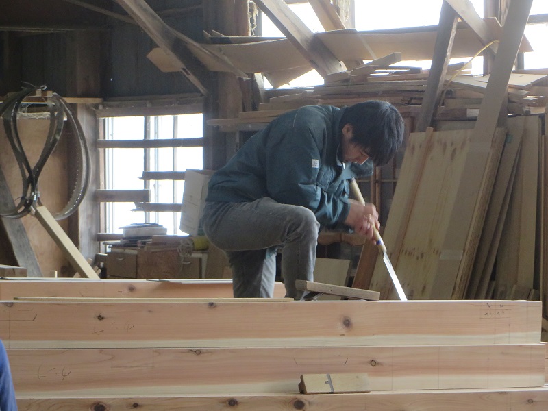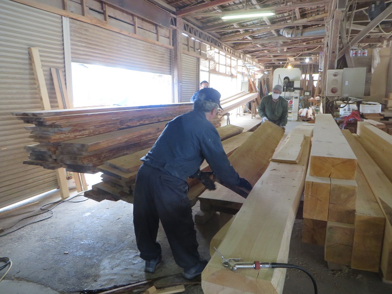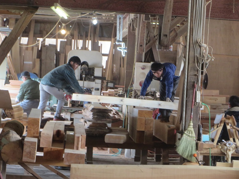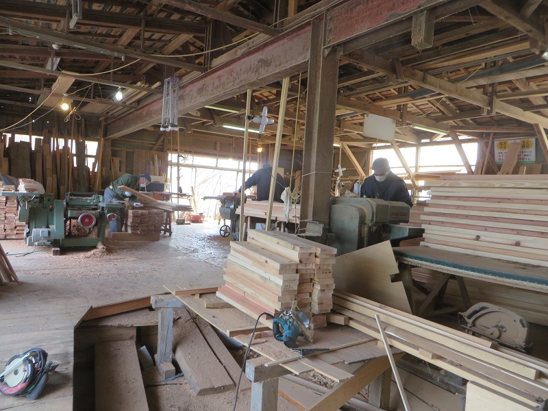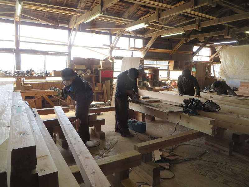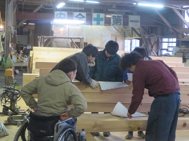 若手大工のみならず、熟練大工の面々も生き生きと無垢材加工に取り組んでいます。