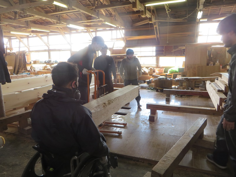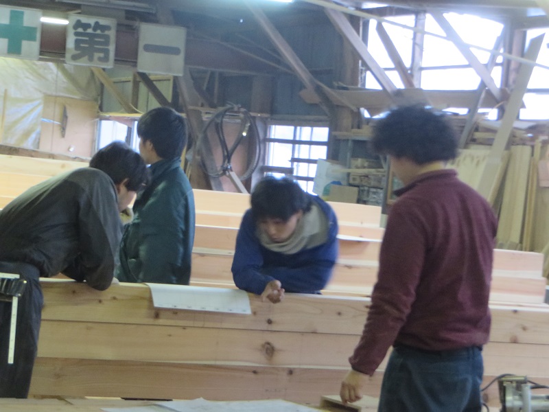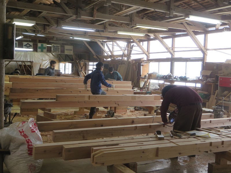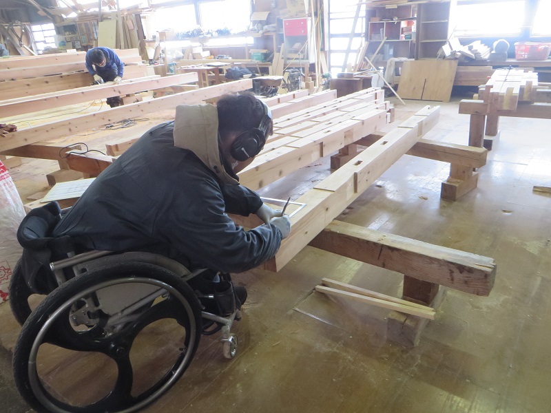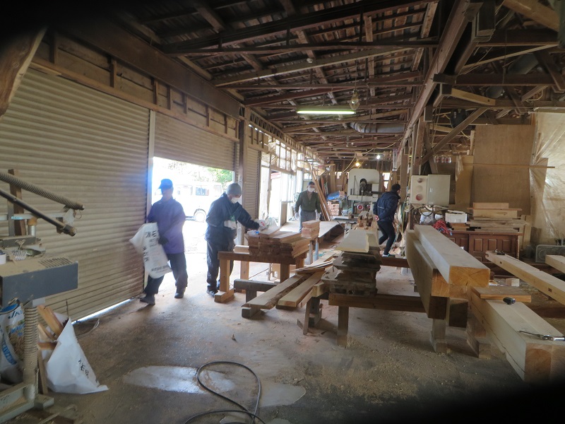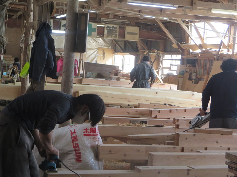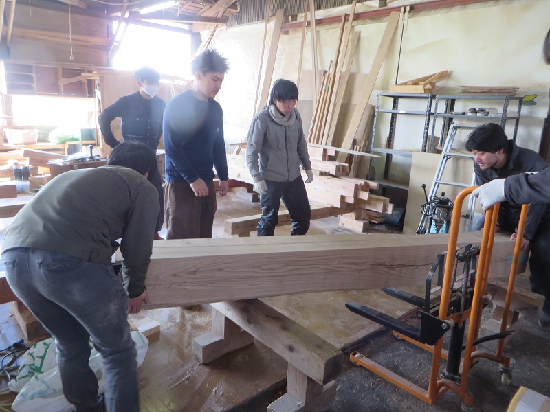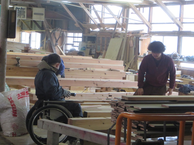 若手大工のみならず、熟練大工の面々も生き生きと無垢材加工に取り組んでいます。