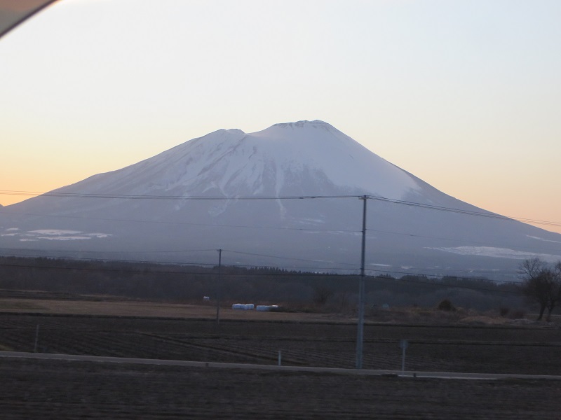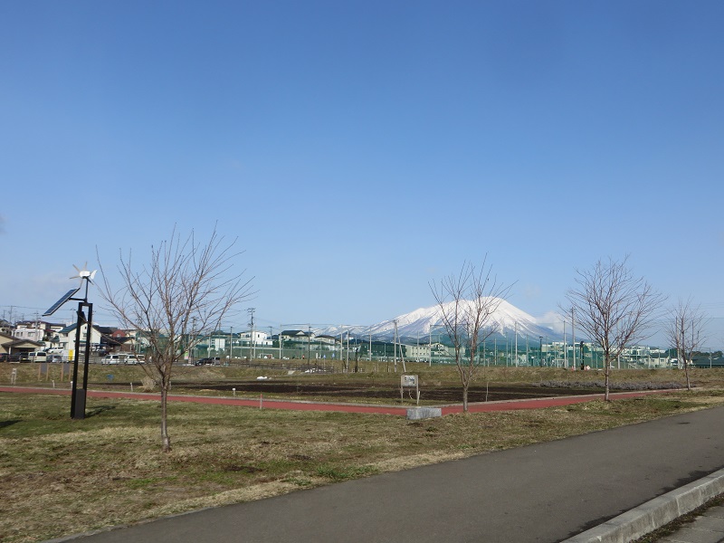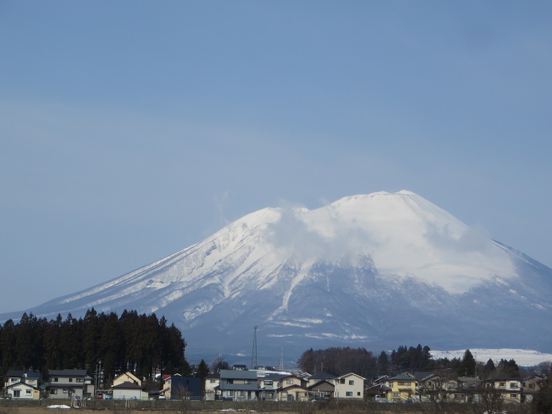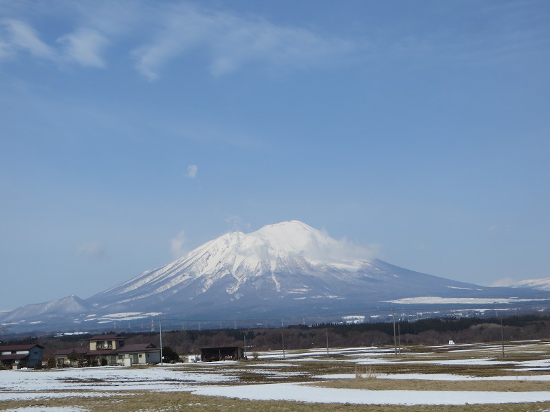 周囲は雪が解けて来ても岩手山の冠雪風景が印象的です。