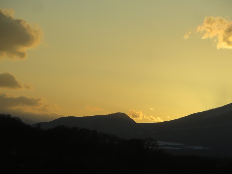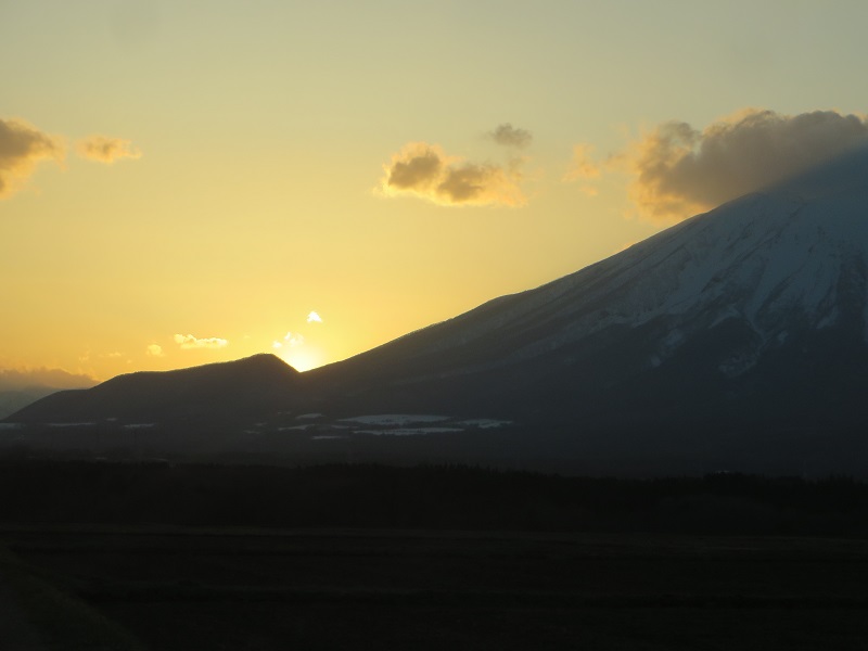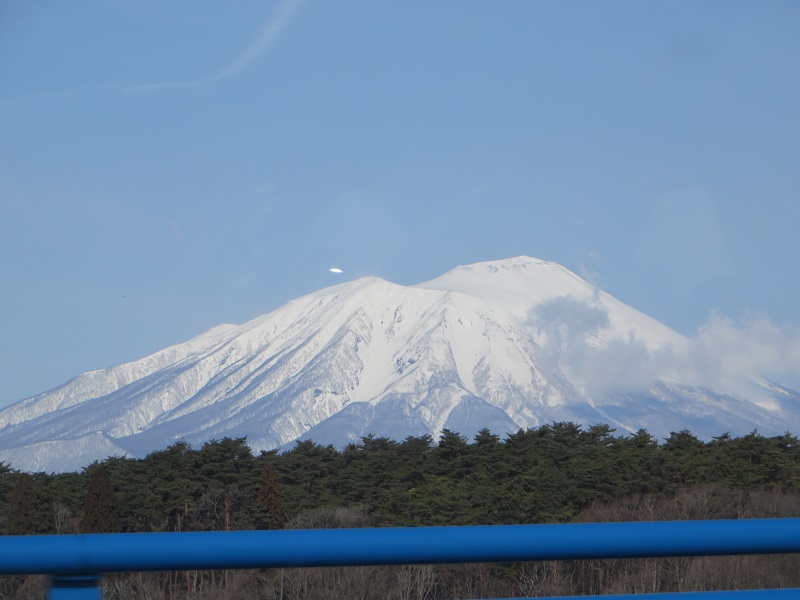 先日は岩手山でしたが、今回は姫神山の美しい三角の稜線の写真です。春先の白い尖がりはとても目を惹きます。
