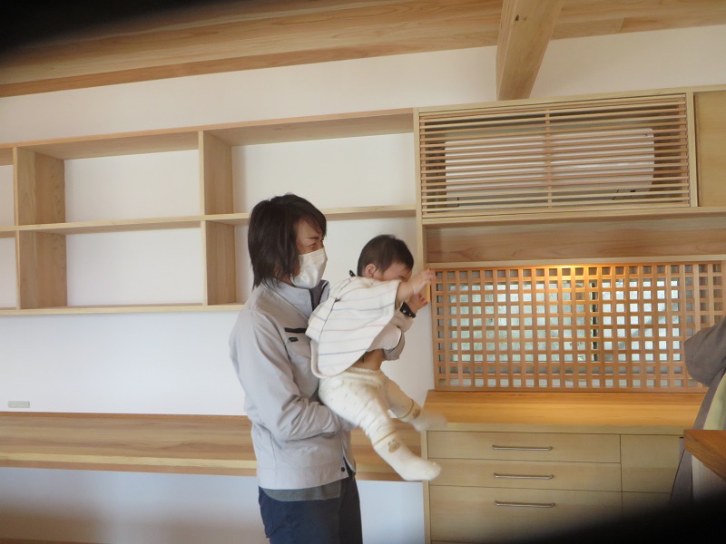 26日27日と無事二日間見学会を開催させて頂きました。可愛いお子さんが来ると会場が華やかになって嬉しいですね。当社の見学会会場は自然素材に包まれた健康的で有害物室の無い安心出来る空間なので、人見知りのお子さんでも直ぐに懐いてくれたりと不思議がたくさんあります。