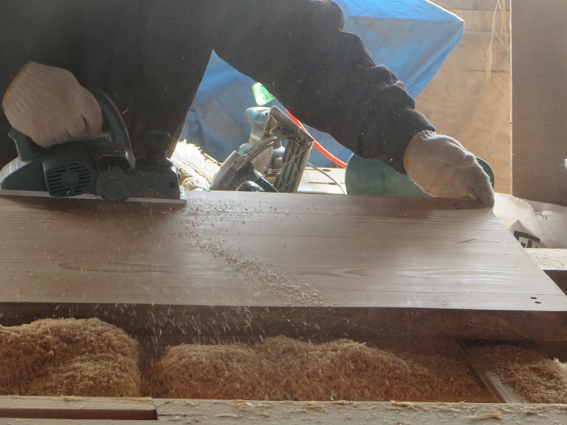 最後の凹凸は鉋をかけて滑らかにしてきます。