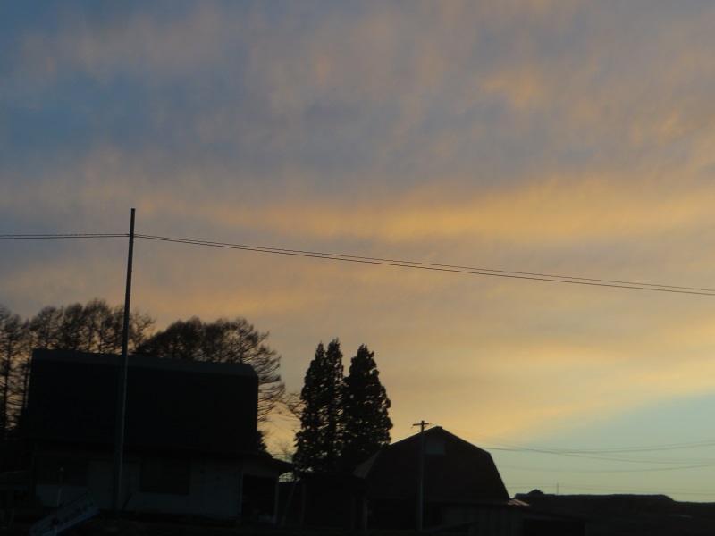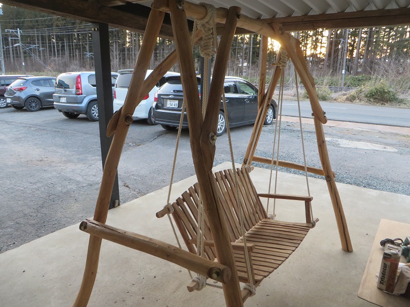 木のブランコが売れました。それと昨日の夕焼けです。早春の頃はこの黄色で、次第に赤い夕焼けに変化して来ると思います。