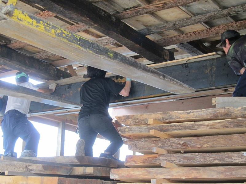 引き続きの梁補強の風景です。力持ちの大人数で出来る事が有難く、溶接までこなす頼もしき面々です。