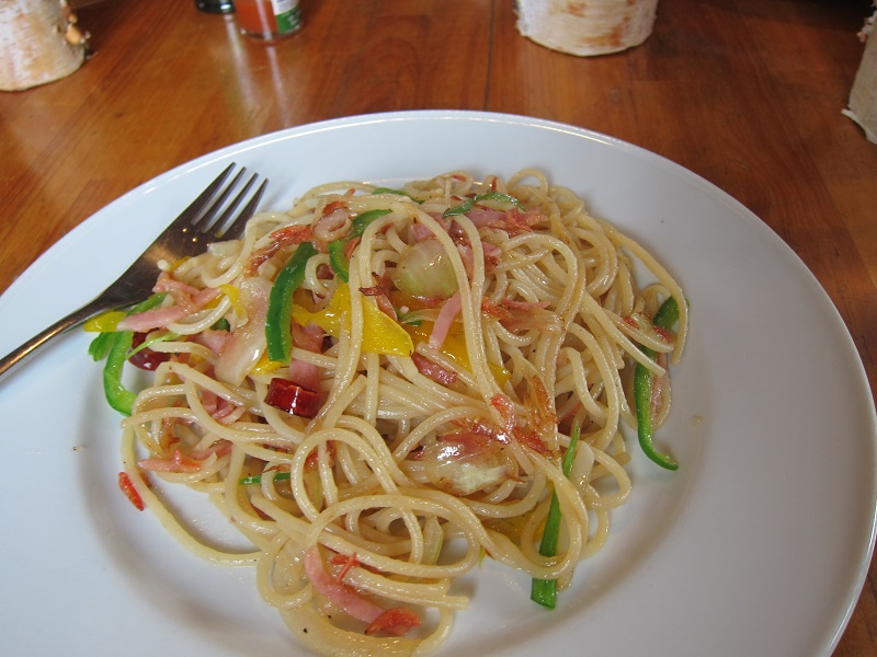 大川松草線を松草方面に向かうと、釜津田地区にある喫茶店ぶるっくがありました。openの看板が出ていたので、初入店させて頂きました。今この時畑から収穫したてのアスパラスパゲッティや桜エビのピリ辛パスタにトマトソースパスタを昼食ランチに頂きました。我々3人の他に後から二組計4人の合計7人の来客で、山奥でもきちんと賑わっていましたよ。
