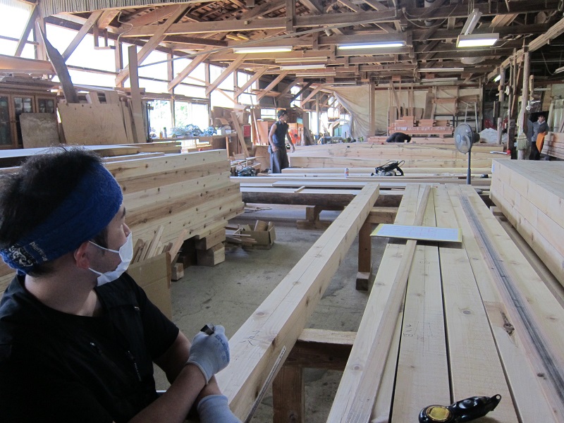 作業場場内では、引き続きの車庫材の刻みが進んでいます。