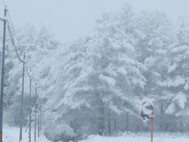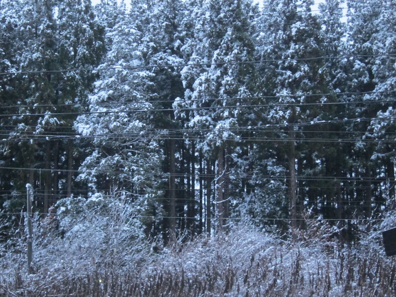 今年最初ではないかもしれませんが、ここまで降るのは初になるかと思ってタイトルは初雪としてしまいました。通勤路は寂しくなった木々の枝に花が咲いた様に見えます。前日から山の方から雪が降り出しそうな気配は感じていました。