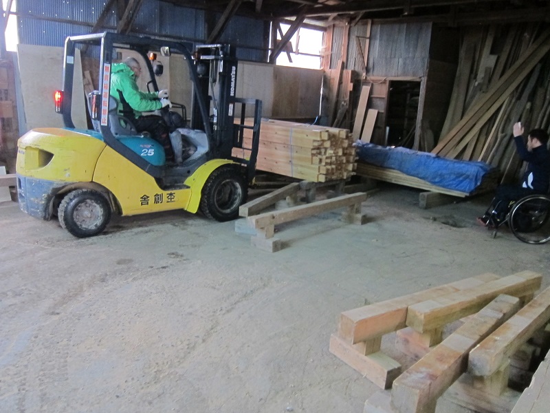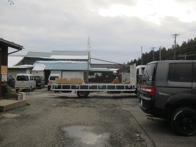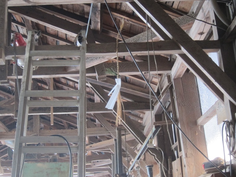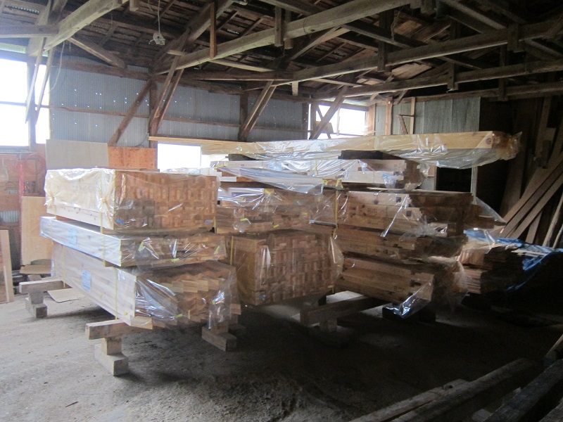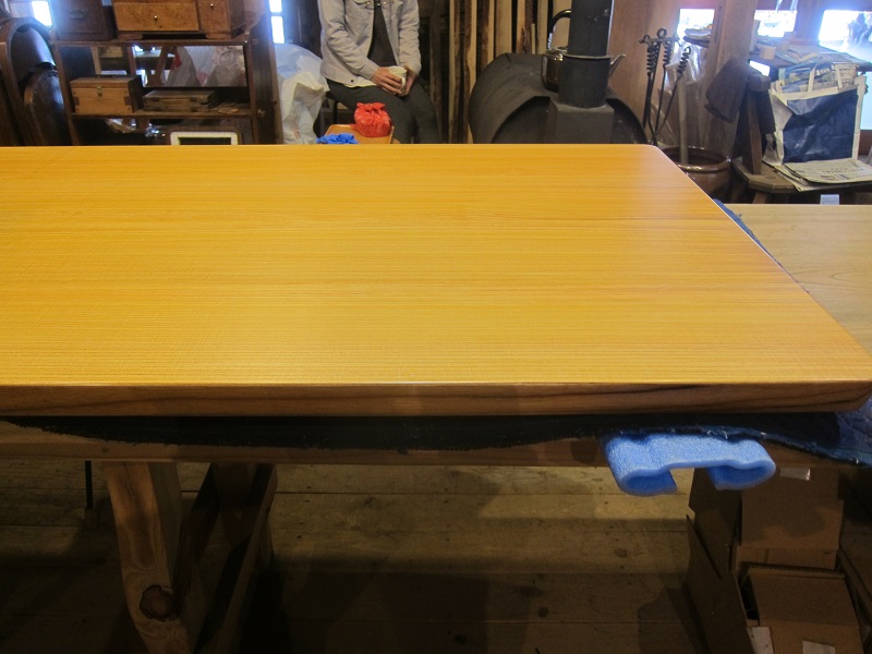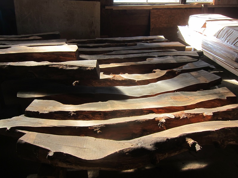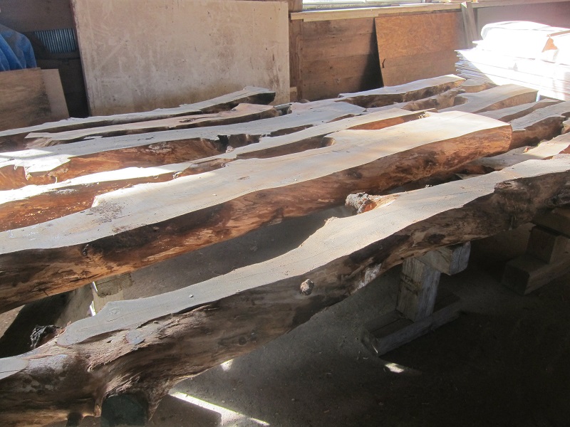 十字架の欅材は弊社でご提供させて頂いておりますが、この二本の材を取るために大きなテーブル板を二枚引き割っての準備でした・・・