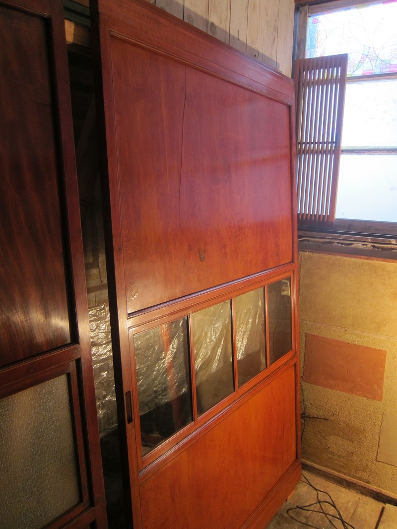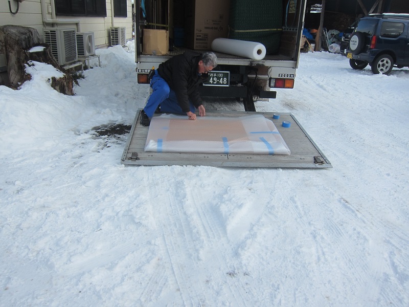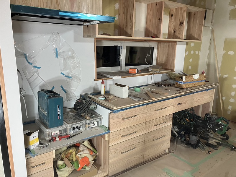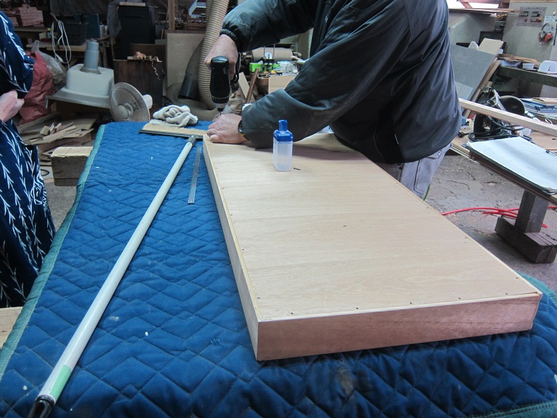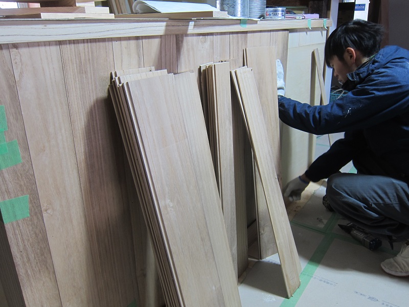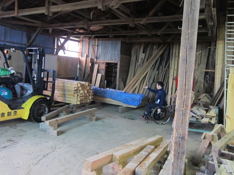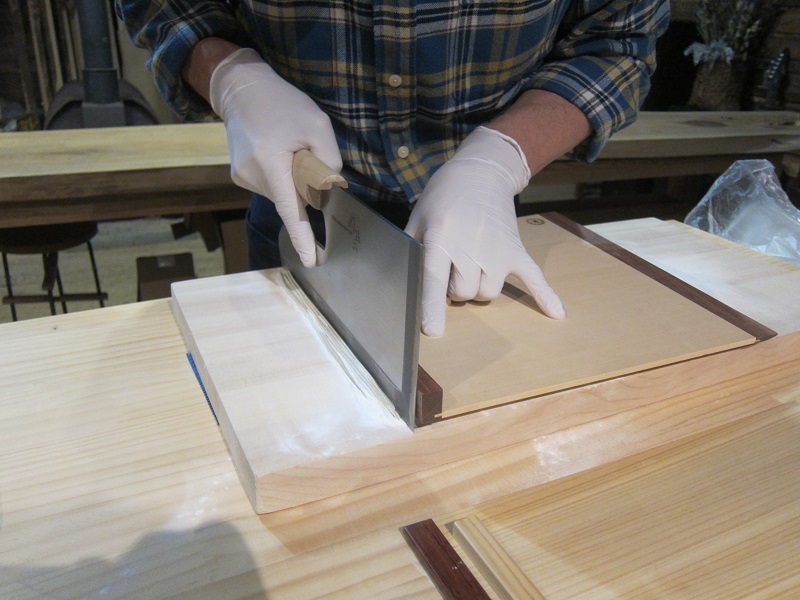 十字架の欅材は弊社でご提供させて頂いておりますが、この二本の材を取るために大きなテーブル板を二枚引き割っての準備でした・・・