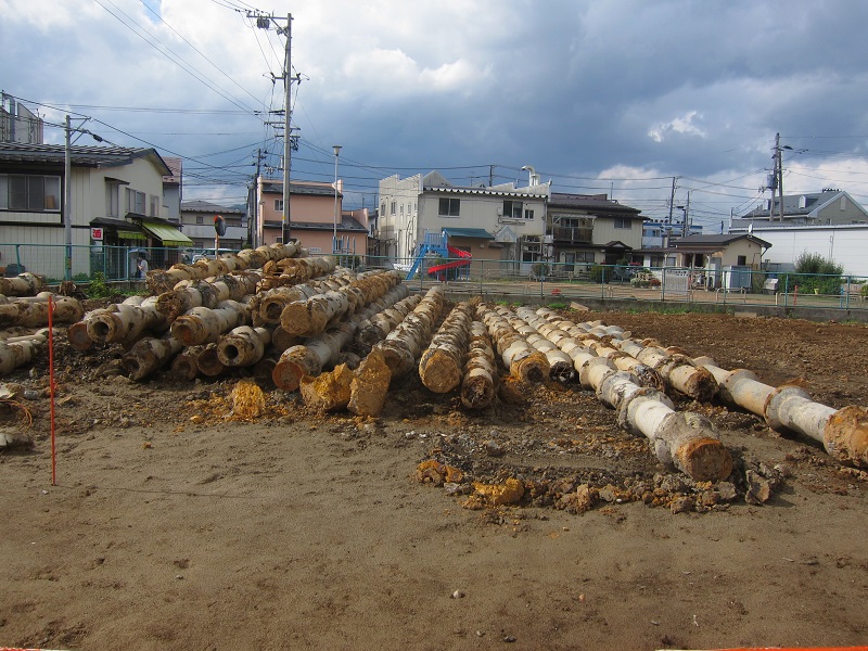 建替えで解体された以前の基礎杭が引き抜かれて置いてありました。