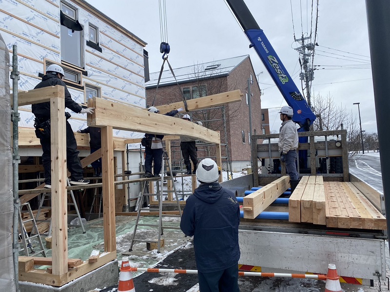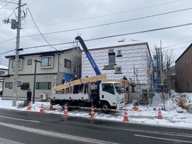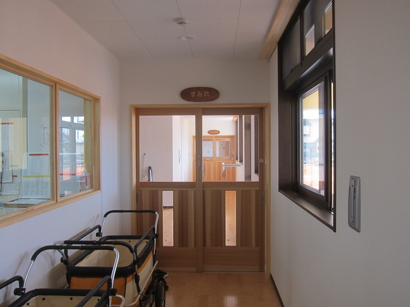 今年建替えられた北厨川保育園の玄関入り口のアプローチに屋根を造らせて頂く予定が御座います。昨年工事前に園庭から伐採された桜の木を弊社で預かり製材させて頂いていたので、その桜の木を使用したキャノピー造りのお打合せを昨日させて頂きましたので、その様子や竣工した保育園の様子をご紹介させて頂きます。