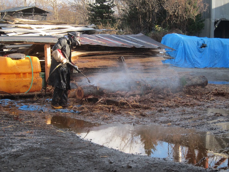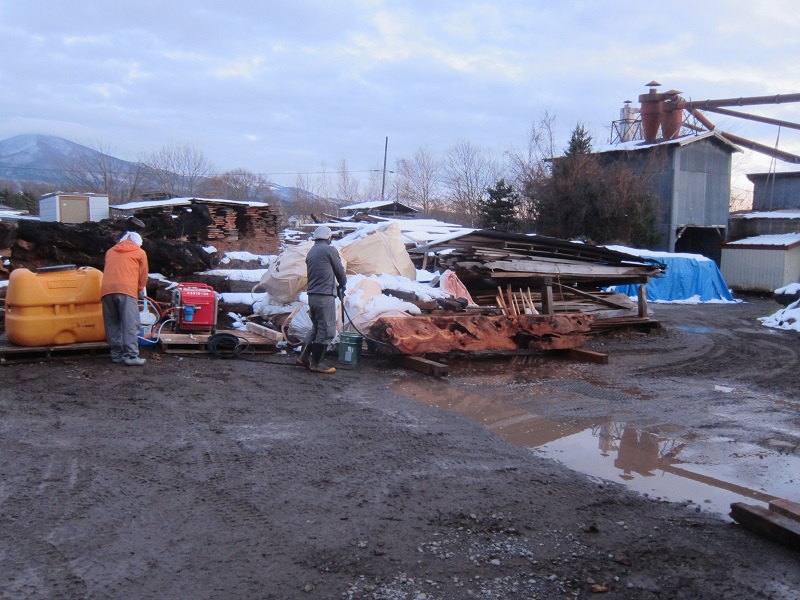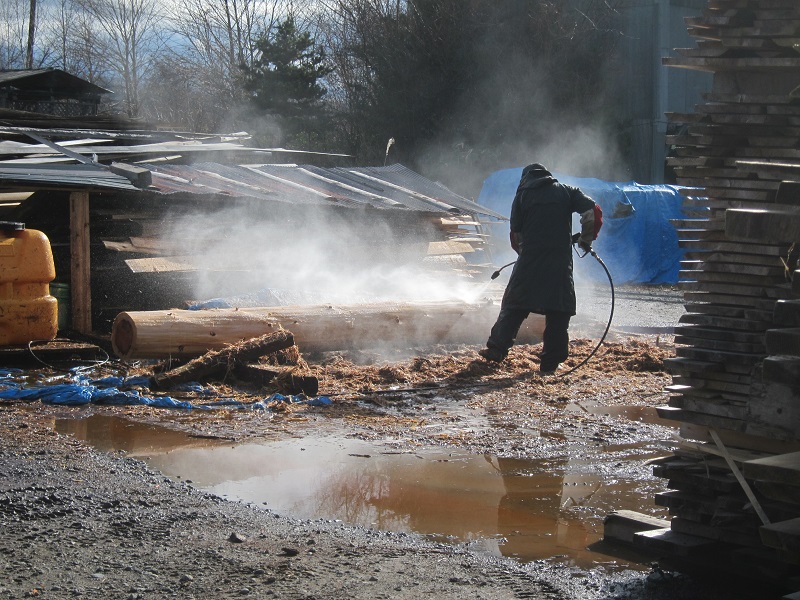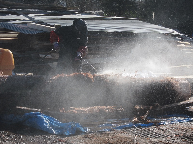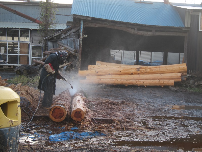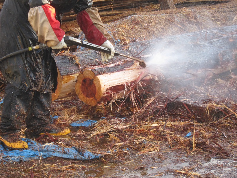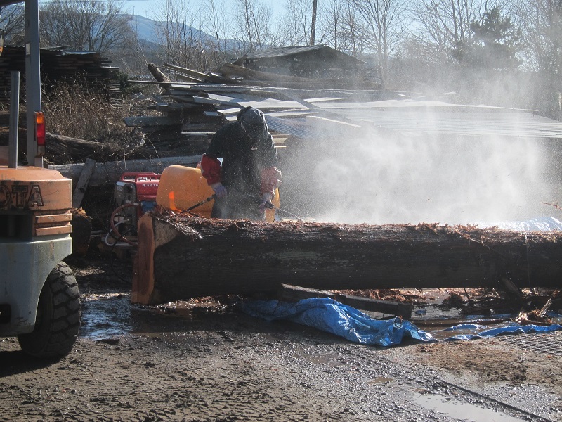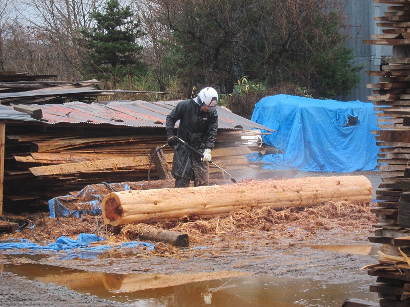 使える部分は製材して使いたいので、土を落として磨いて製材準備を致しました。