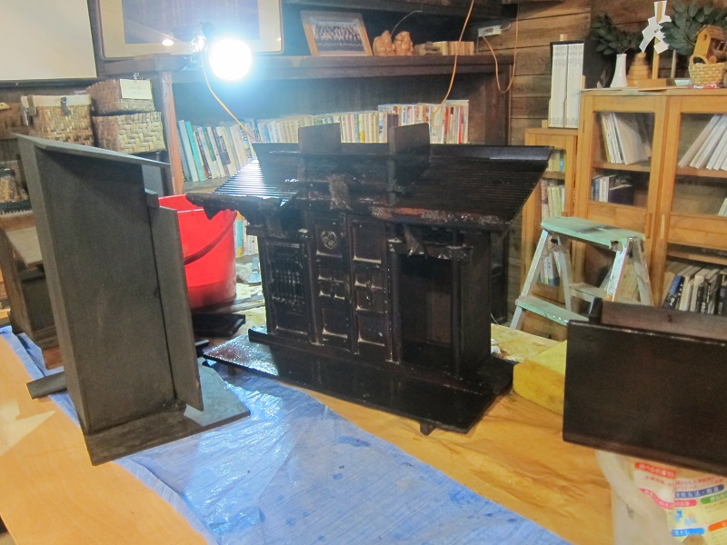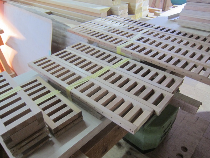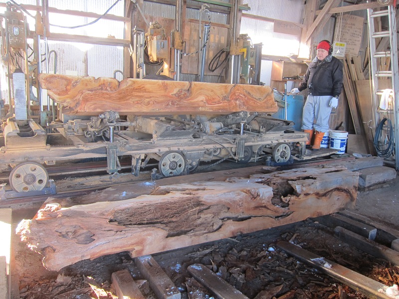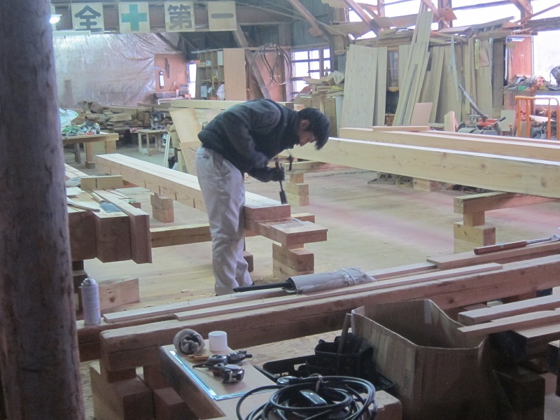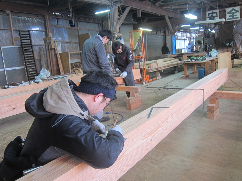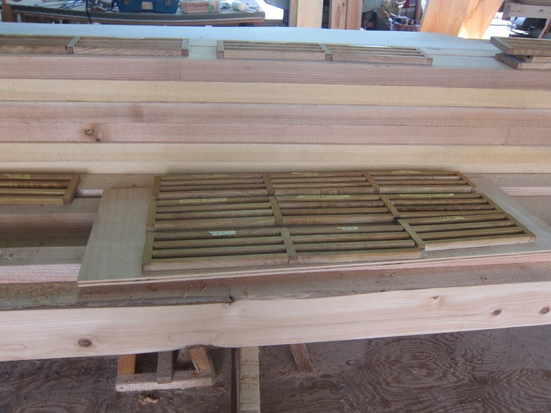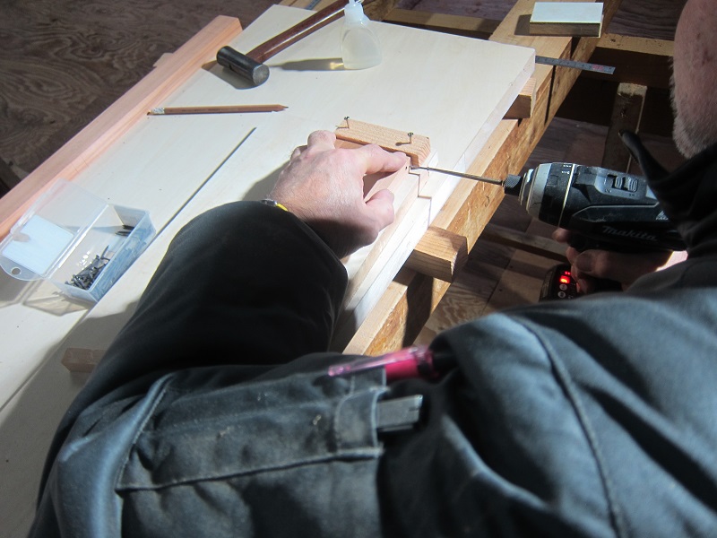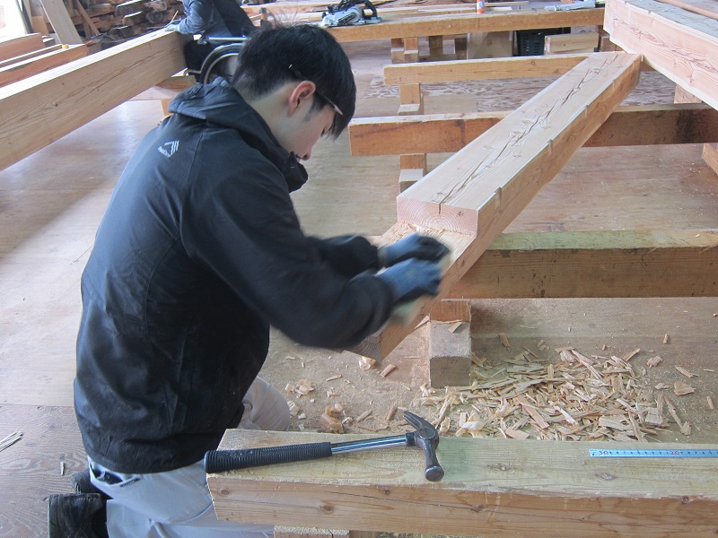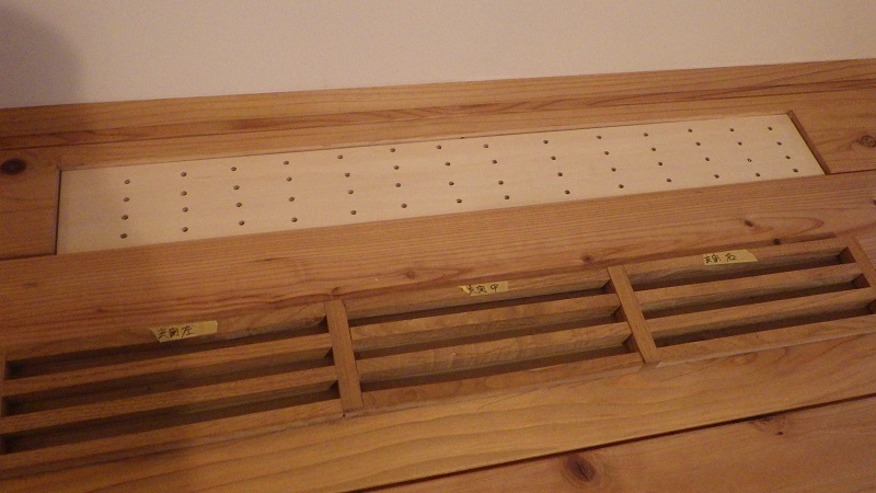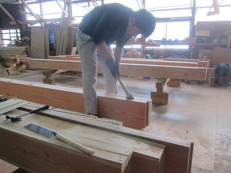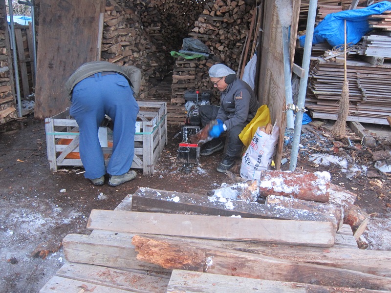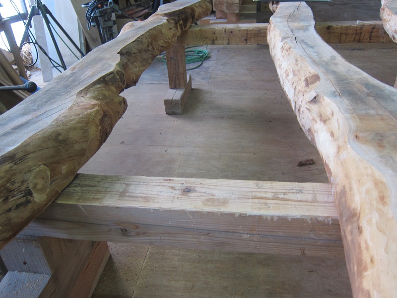 桜材を何が何でも使う理由があります。元の園庭の桜の木だからなのですが、いざ使おうと加工するとかなりの難儀材です。洞が有った部分は当然の如くですが、その周りは割と確りしているので、丈夫な板を張り付けて補強する作業を大勢の連携プレイで行う場面に遭遇してシャッターチャンスでした。