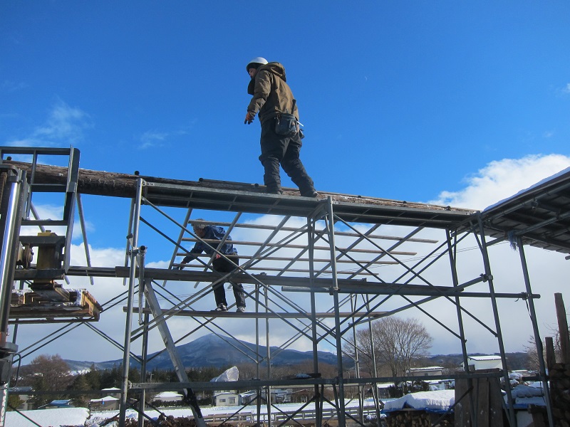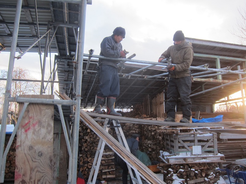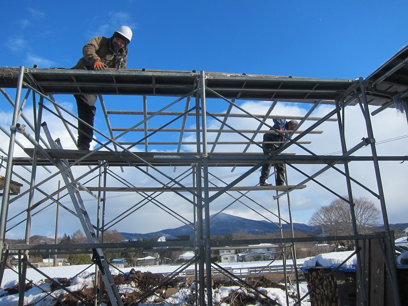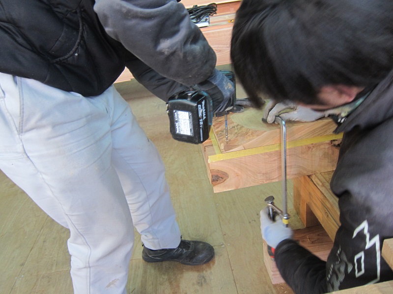 これまたせーのっ!と掛け声宜しく厚板を貼り付けました。