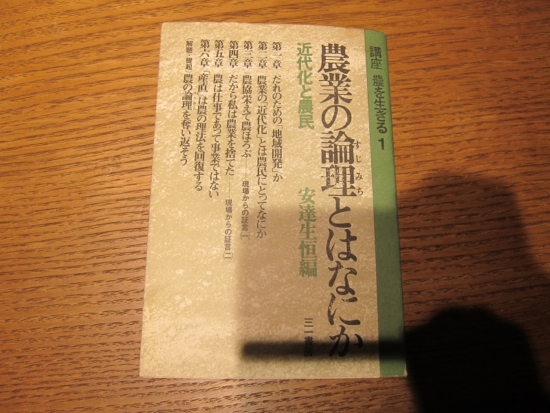 本日の写真の本は。1975年発行と記載されている50年前の書籍です。日本が農地を捨てて日本列島を通信網交通網の充実した工業都市へと造り上げて行こうとしているその時に、我々は日々何を食べて生きているのかと警鐘を鳴らし、飛行機飛び宇宙へ行こうとも、新幹線が中央と地域を繋ごうとも、農地に緑あふれる日本列島が無くなって良いのか良い筈が有りません!とその様な内容が切々と説かれている本です。半世紀も前からの的を得た指摘内容が、現代の抱える寂し気な町中の景観と融合してきてしまいます。こうした問いかけに耳を貸して良い未来を創り上げるべき政治家の方々が裏金創りに懸命になっている現代の闇を何とかせねば日本は農業以上に衰退してしまうぞと、地球温暖化で暖冬の雪の無い外を眺めながら思うのでありました。これらの本は好摩の杢創舎文庫の本棚にありますが、何時でもご自由に手にして頂く事が出来ますので、宜しければ春になりましたら、遊びに来てみて頂ければ幸いです。