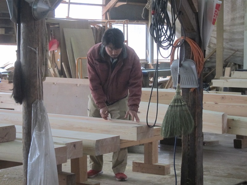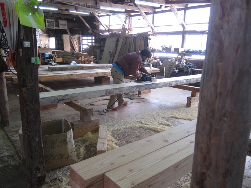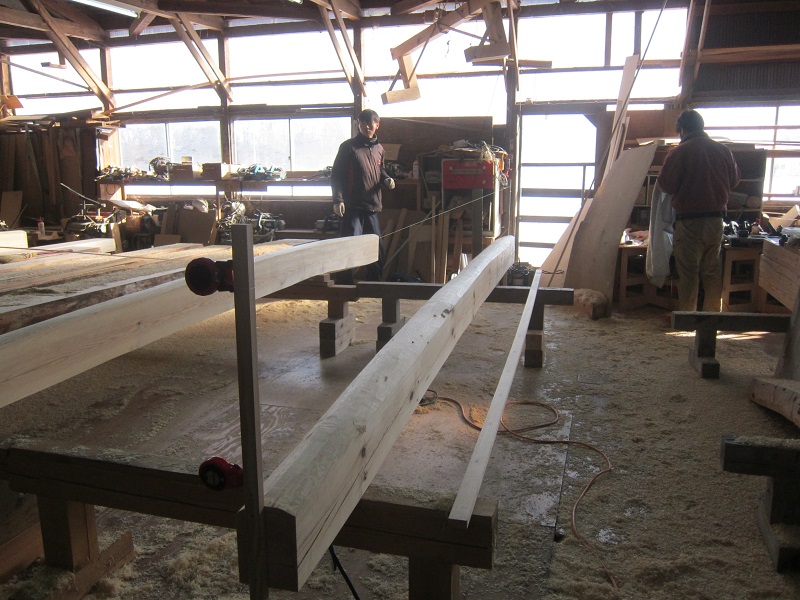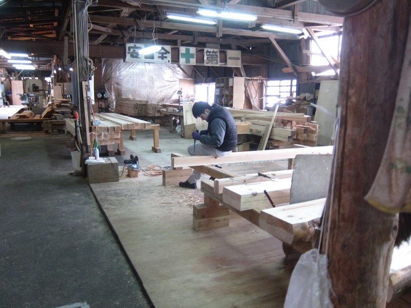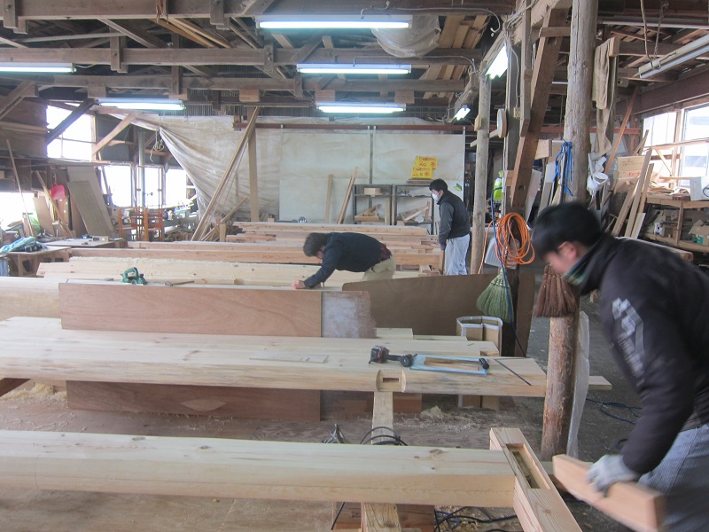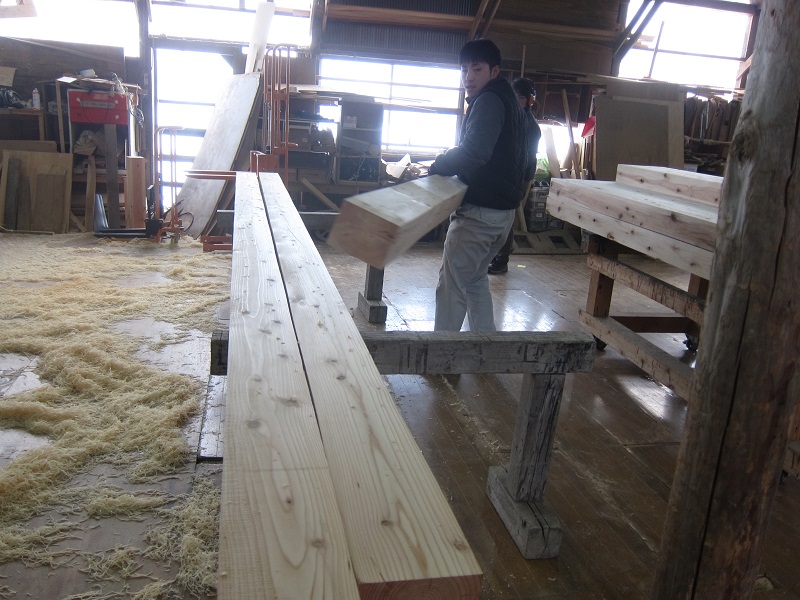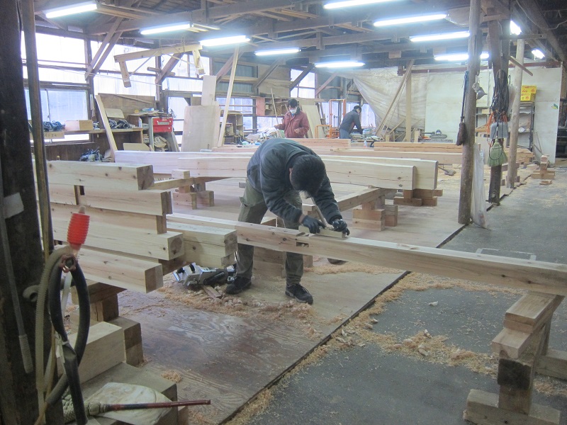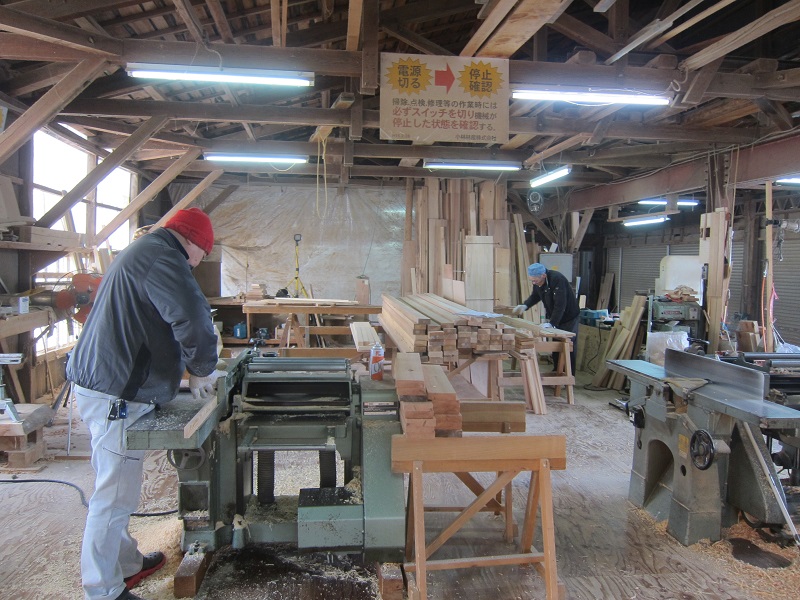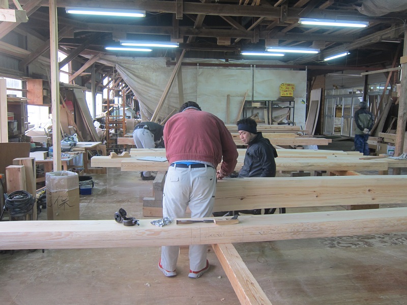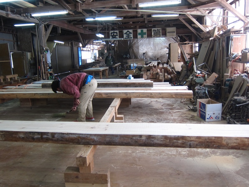 午前中の日記の後場内を歩くと、とても活気がありました。墨付け手刻み造作加工と皆頑張っています。銘々個々に取り組む人も居れば、先輩の指導の下頑張る姿もあって頼もしき面々も、14時46分には手を止めて、黙祷を捧げさせて頂きました。