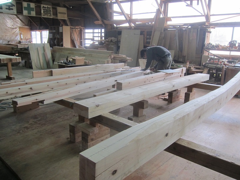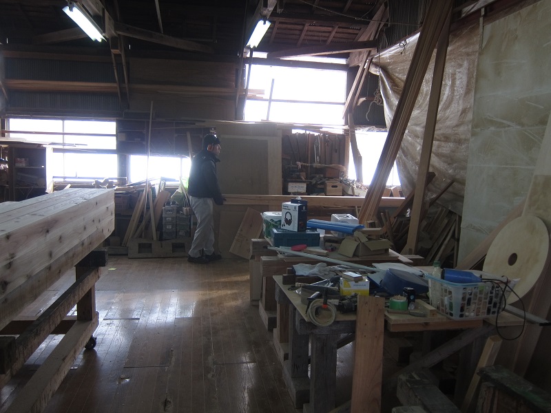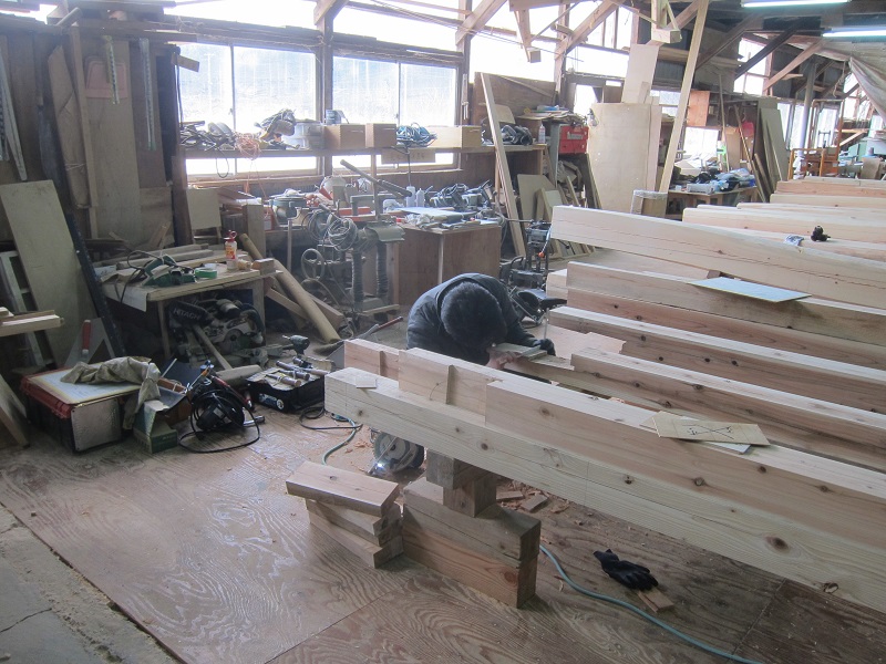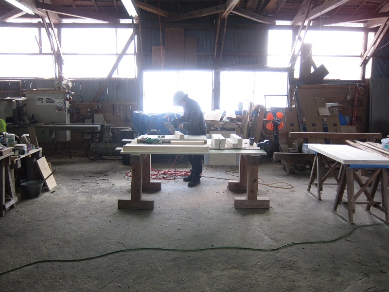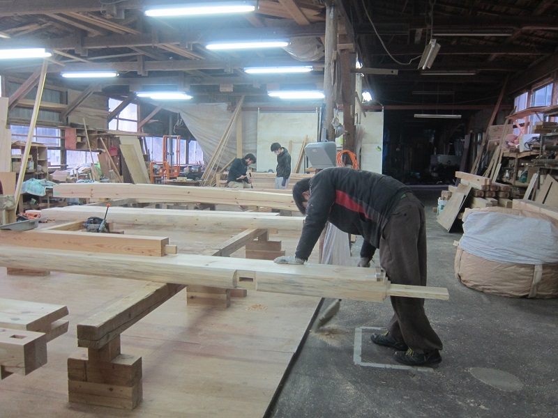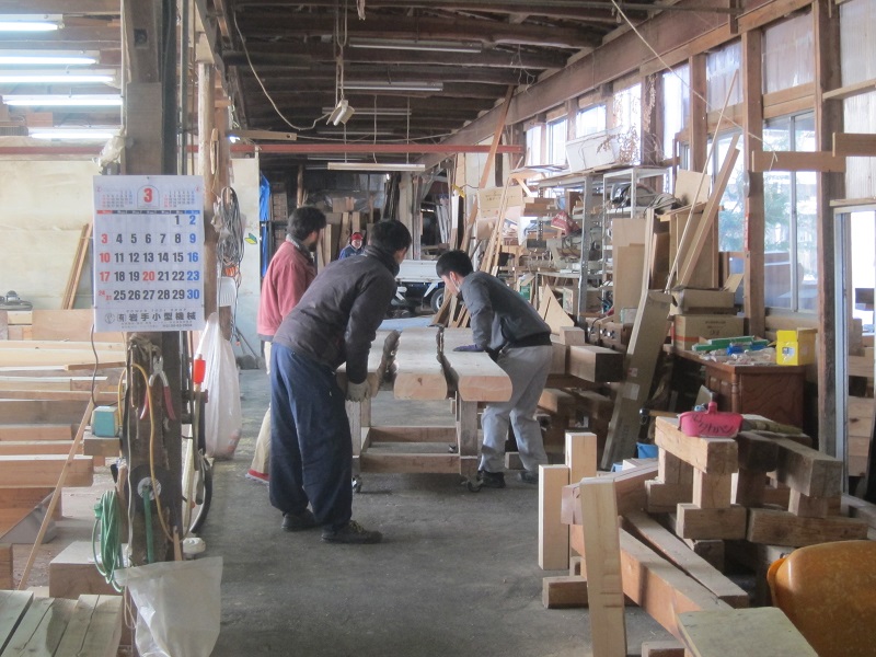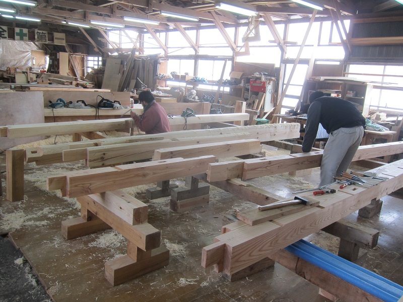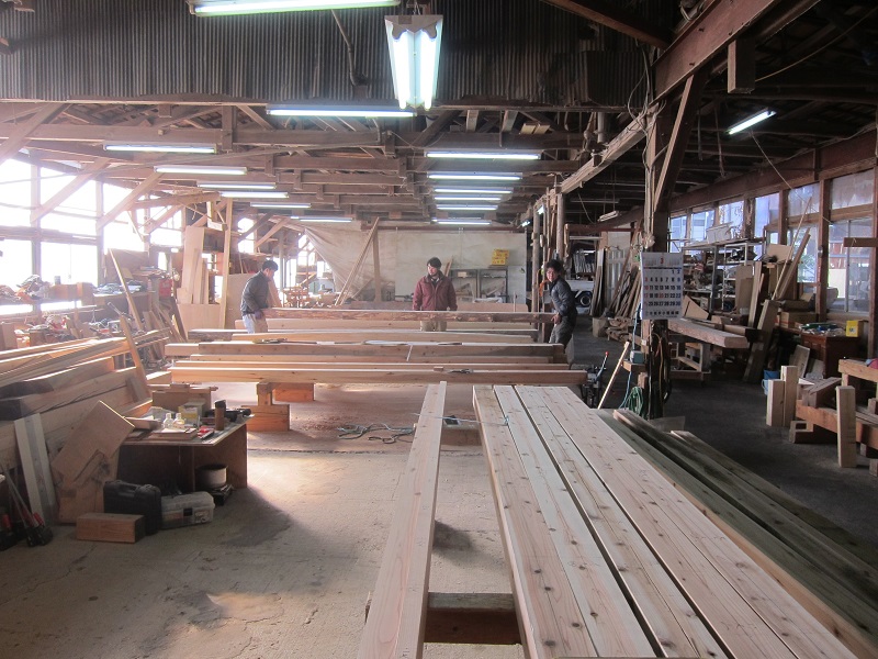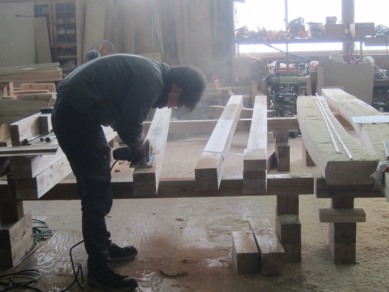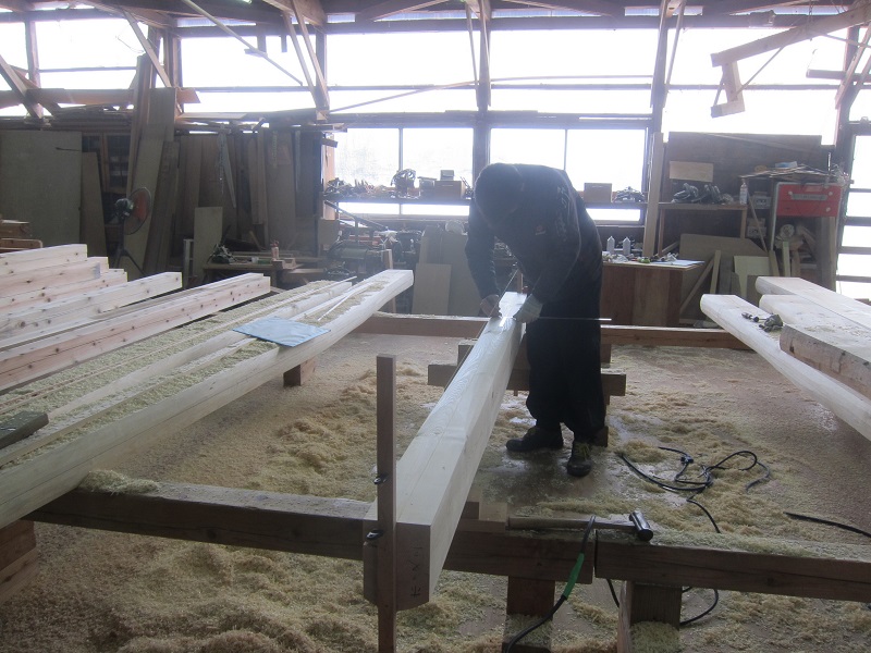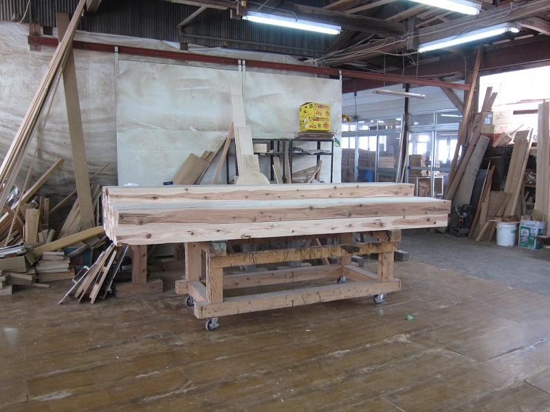 午前中の日記の後場内を歩くと、とても活気がありました。墨付け手刻み造作加工と皆頑張っています。銘々個々に取り組む人も居れば、先輩の指導の下頑張る姿もあって頼もしき面々も、14時46分には手を止めて、黙祷を捧げさせて頂きました。