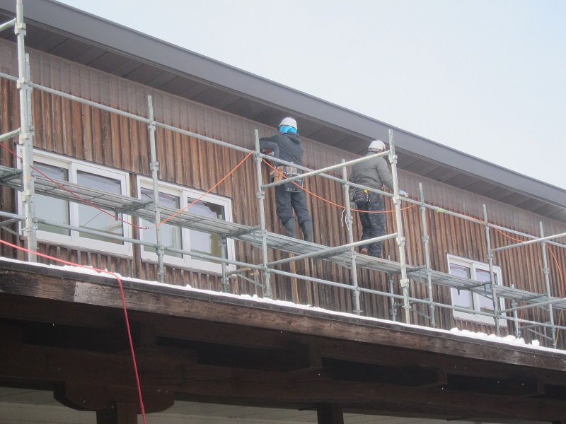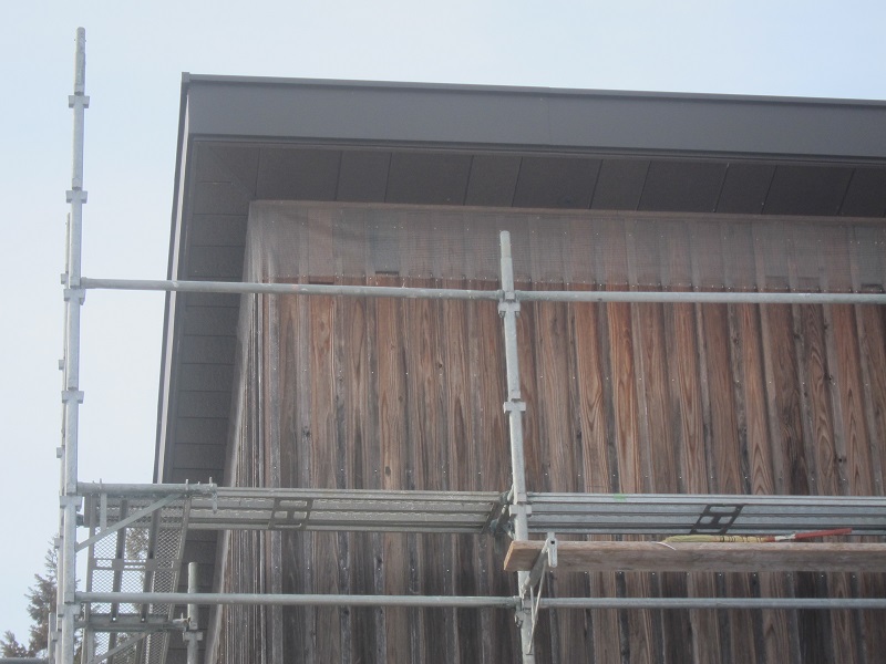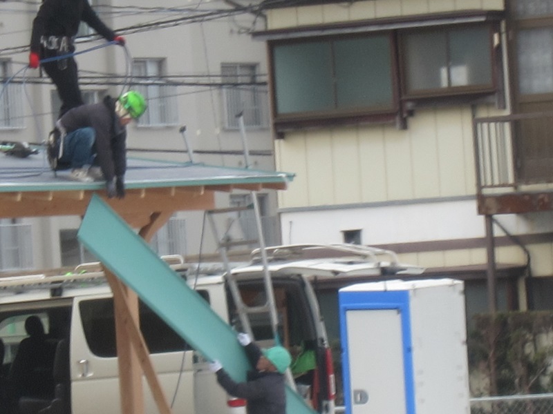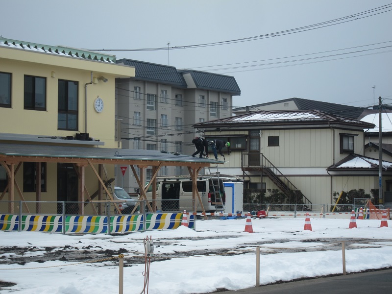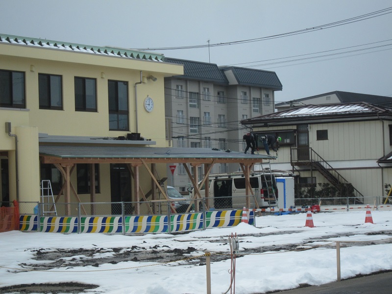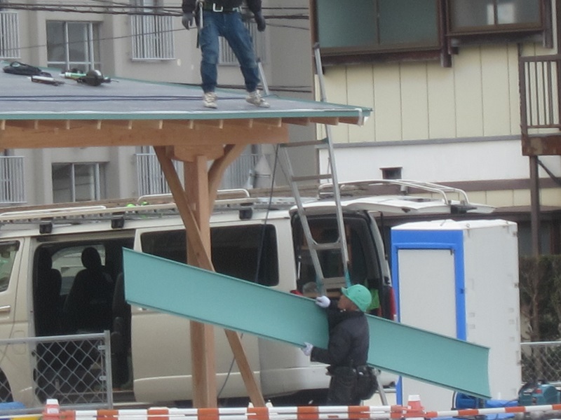 キャノピーの屋根工事が進んでいました。本日葺き上がる予定です。