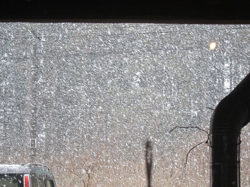 昨日は晴天でしたが風が冷たくて寒い一日でした。そして今日は雪降りです。春よ来いと歌いだしたくなります。物凄い勢いで降る雪はまるで地面に吸い込まれるように溶け込んでいきます。春よ来い早く来いと心が歌います。