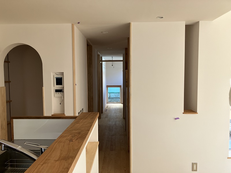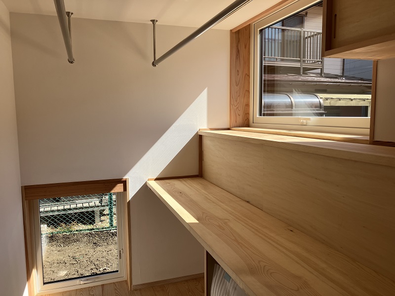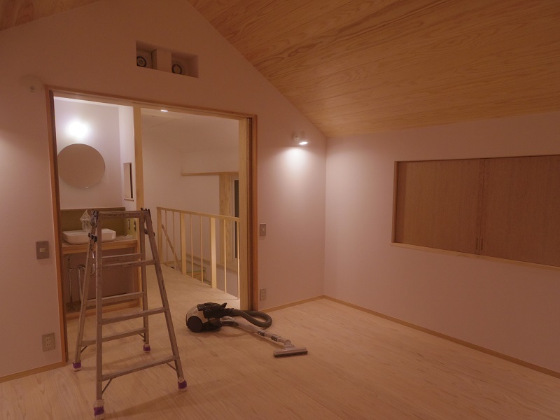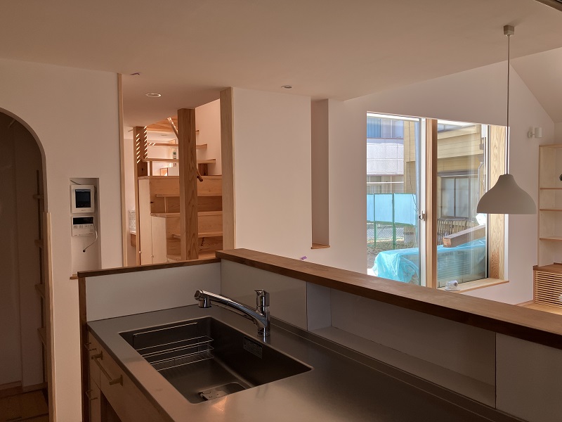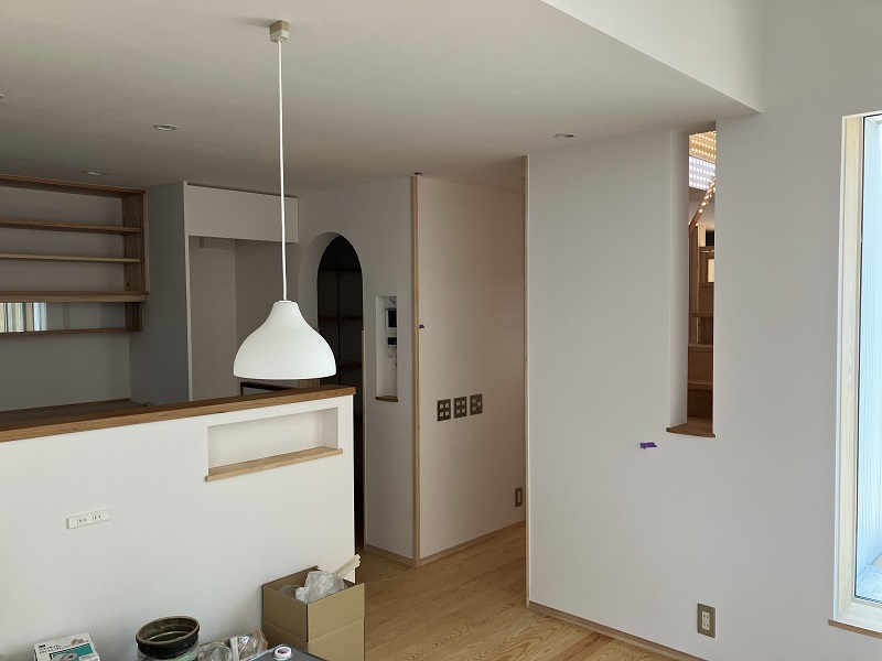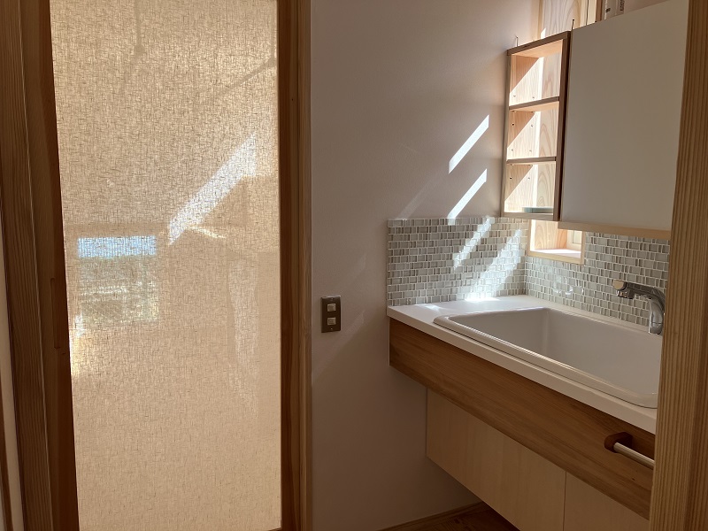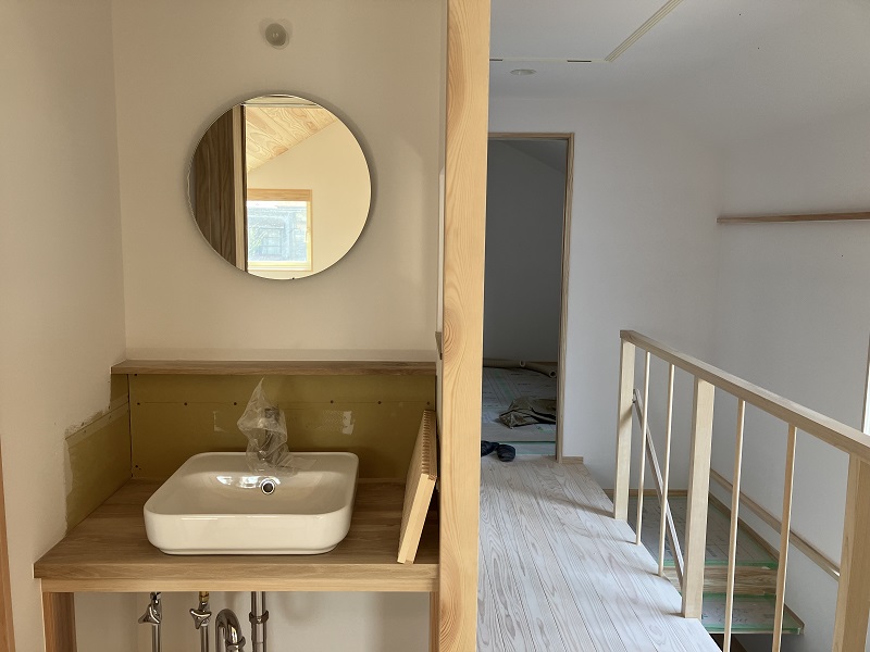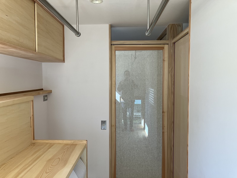 今週末完成見学会の梨木町新築住宅では、写真の様に大方完成して、エアコン等の器具付けと掃除が終われば竣工です。今回の写真は大工造作による、台所や洗面にランドリースペースなどの雰囲気をご紹介させて頂きました。現場便りでも内部の仕上がり雰囲気が見れますが、実際に見て触れて頂ければ幸いです。駐車場に限りが御座いますので、予約制とさせて頂いております。現在ホームページに予約申し込みページが御座いましたので、そちらからお申込み頂いた皆様に会場の住所と地図を添付返信させて頂きますので、何卒よろしくお願い申し上げます。