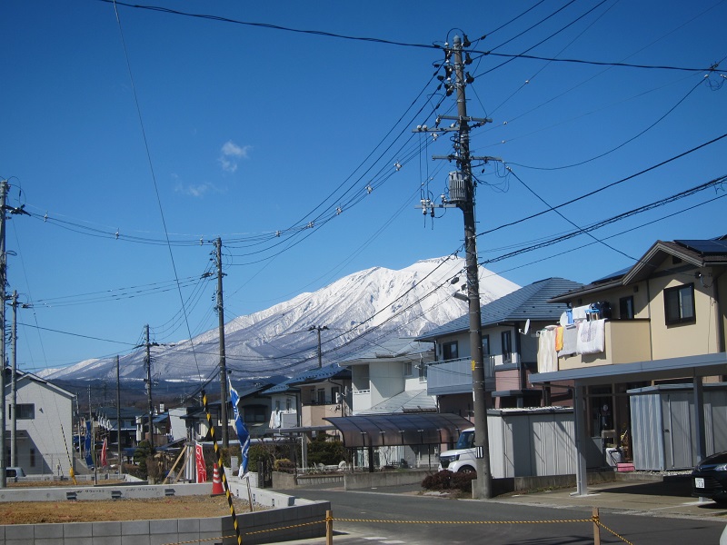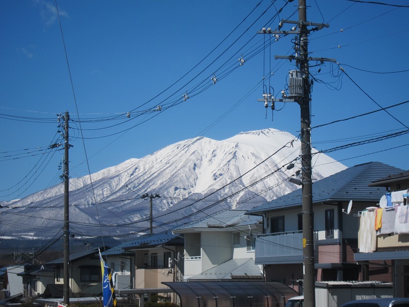 3月暖かい時期に始めた基礎工事でしたが、連続の雪で難儀したのと、体調不良舎も多くて季節が落ち着くのを待ってからの再開とさせて頂いた四十四田ダム湖傍の小屋工事の現場ではやっと春めいてきましたね。梅が咲いていました。そして岩手山が絶景です。その後、巣子動物病院様の外壁工事の確認にも回りましたが、そこからも岩手山が周囲の家並みを包み込む姿でとても印象的でした。青空に映える岩手山です。