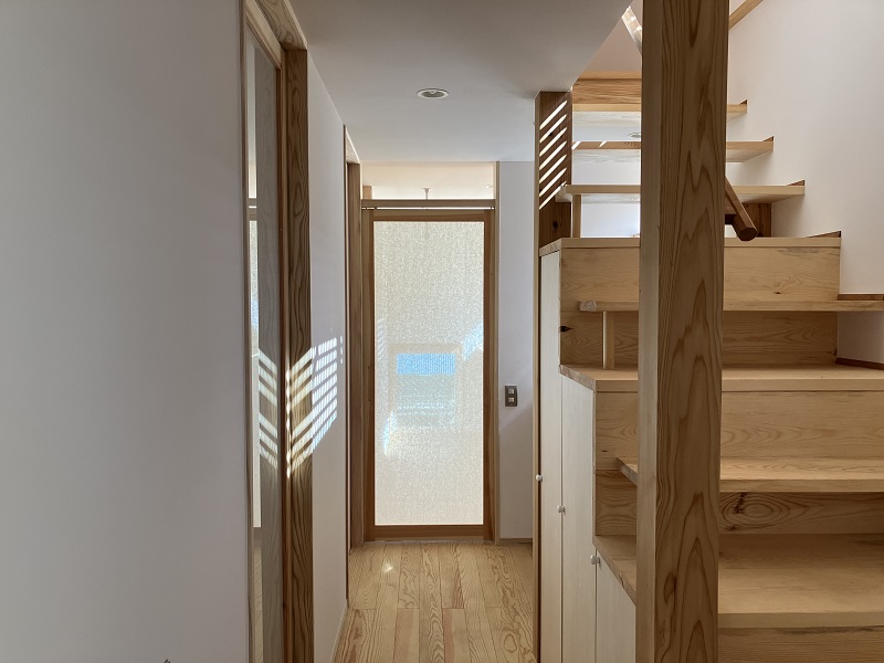 2.道路が狭く密集した地域に建つが、敷地の南北に余白を設け、光が入り風が抜ける気持ちの良いお家