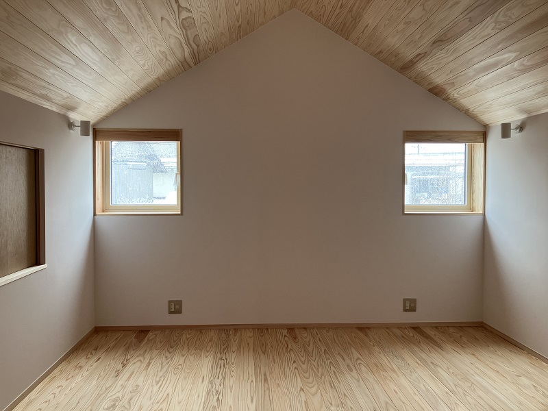 4.三角やRの天井と平らな天井から斜めに伸び上がる天井も共存する変化溢れる空間をご体感ください。