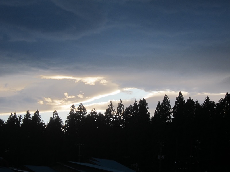 昨日までとても良い天気でしたが、今朝は雨です。昨日の夕刻の空はそれを教えてくれていました。でももう止んでいます。