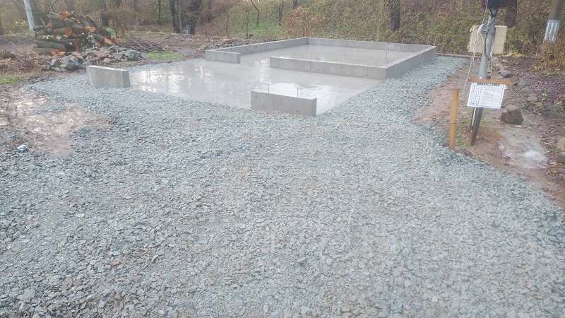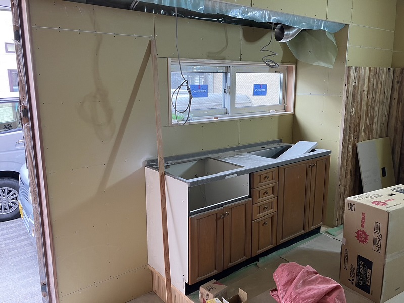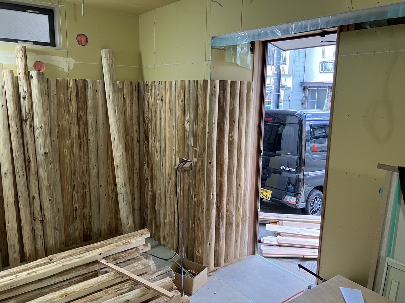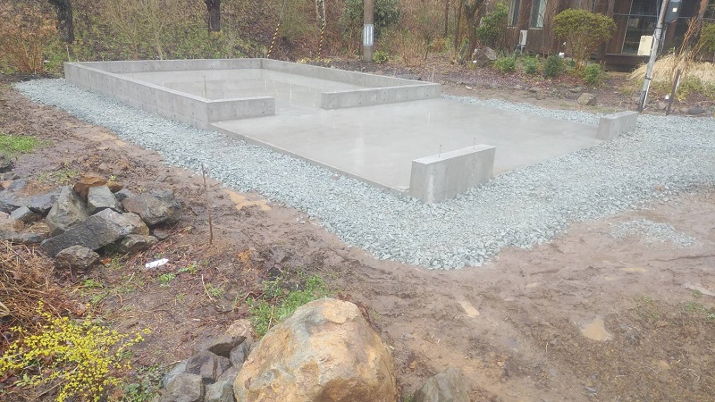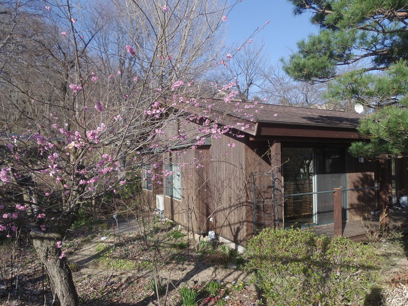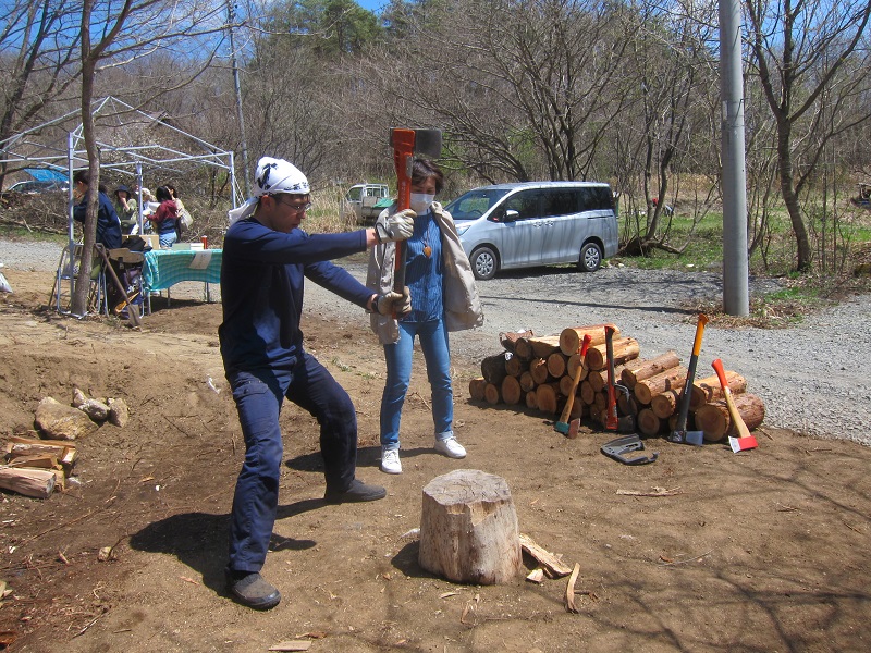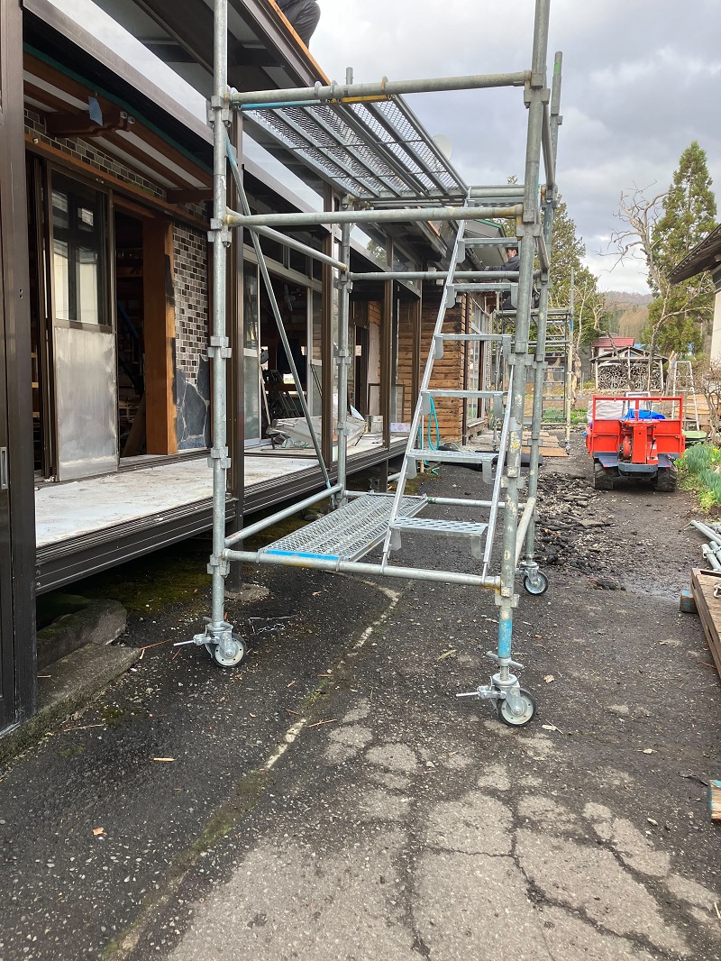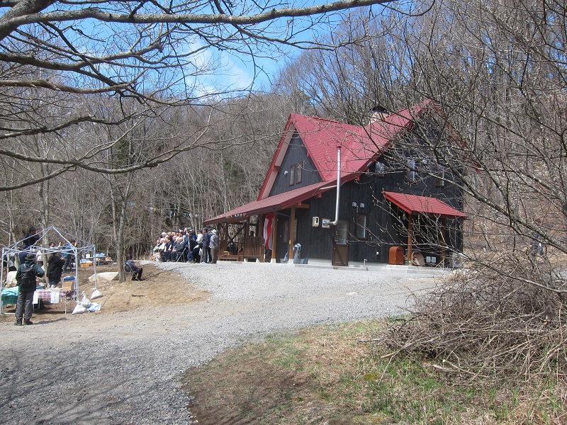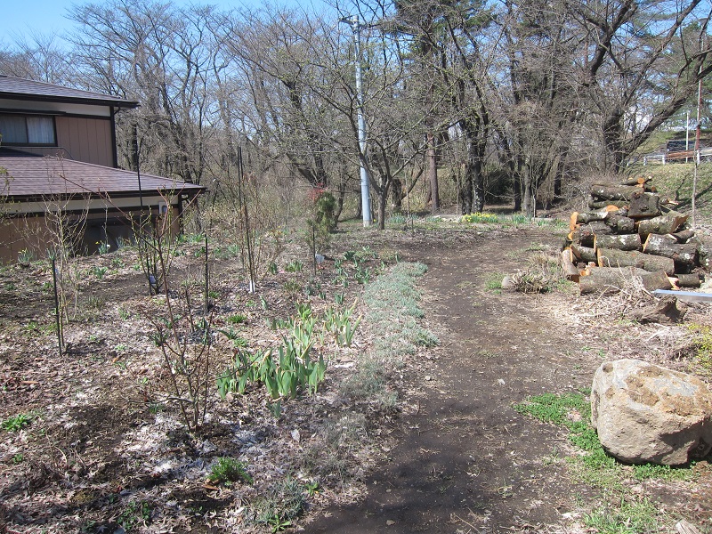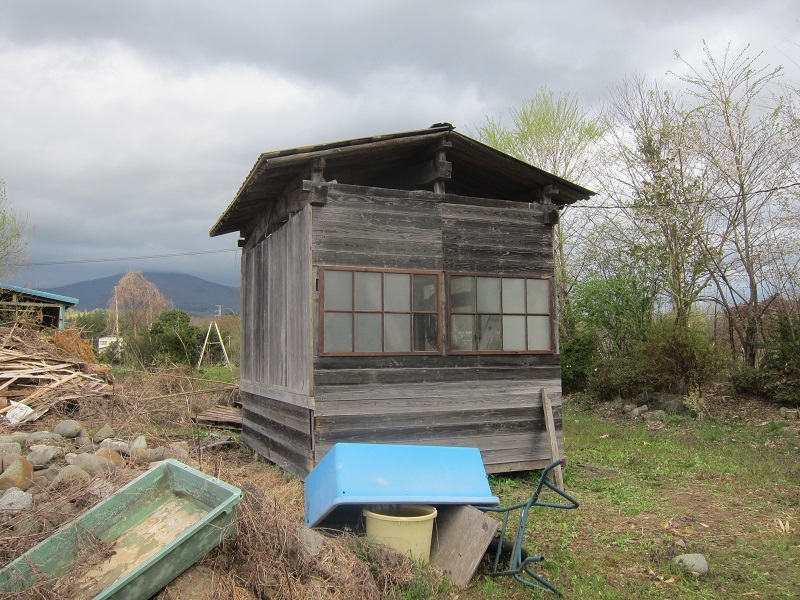春先の雪で難儀した小屋の新築現場は、基礎が完成して整地も進み、建て込みが始まりました。木々の花も咲いて春らしい中での建て方です。お施主様の庭造りもいい感じで今年の薪の準備も順調な雰囲気です。