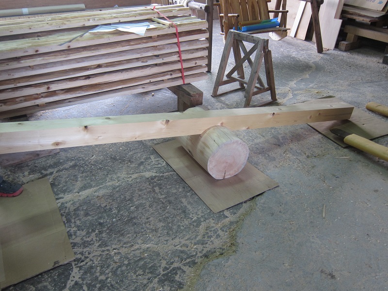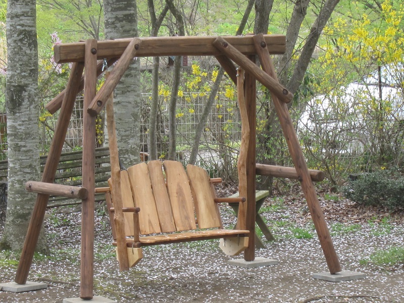 木造りのシーソーとブランコ本日納品させて頂きました。お届け先はピョンピョン舎様本店の素敵なお庭でした。