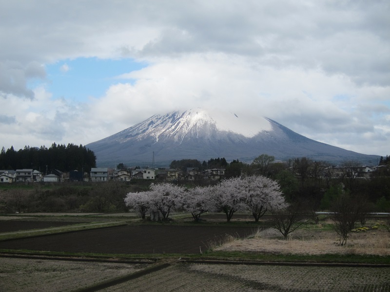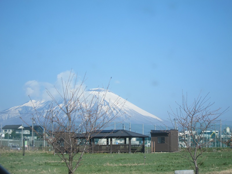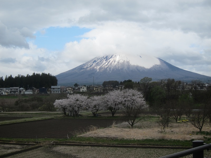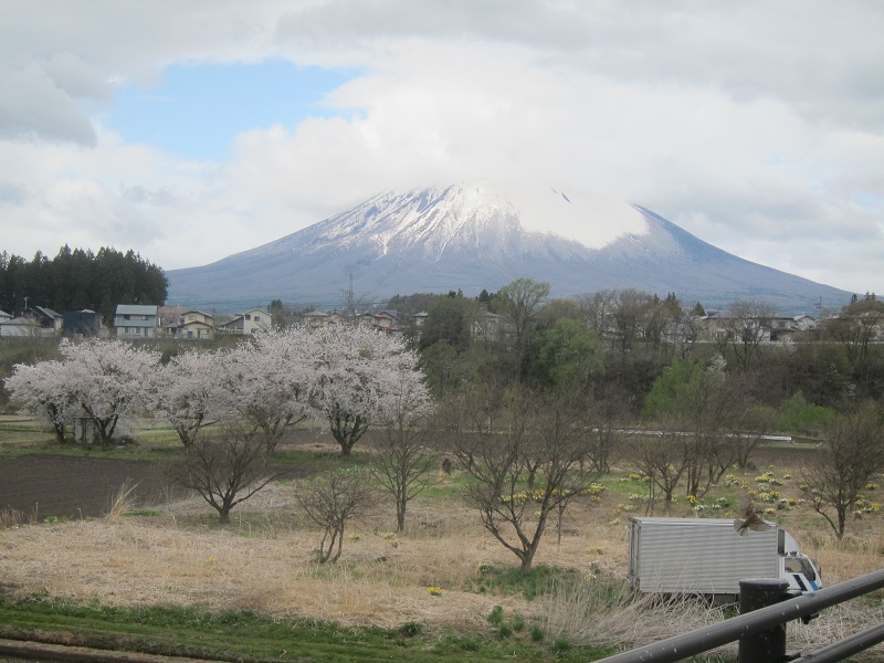 渋民の愛宕神社の鳥居の桜も咲いて、岩手山はその名の通り岩鷲山になってきました。