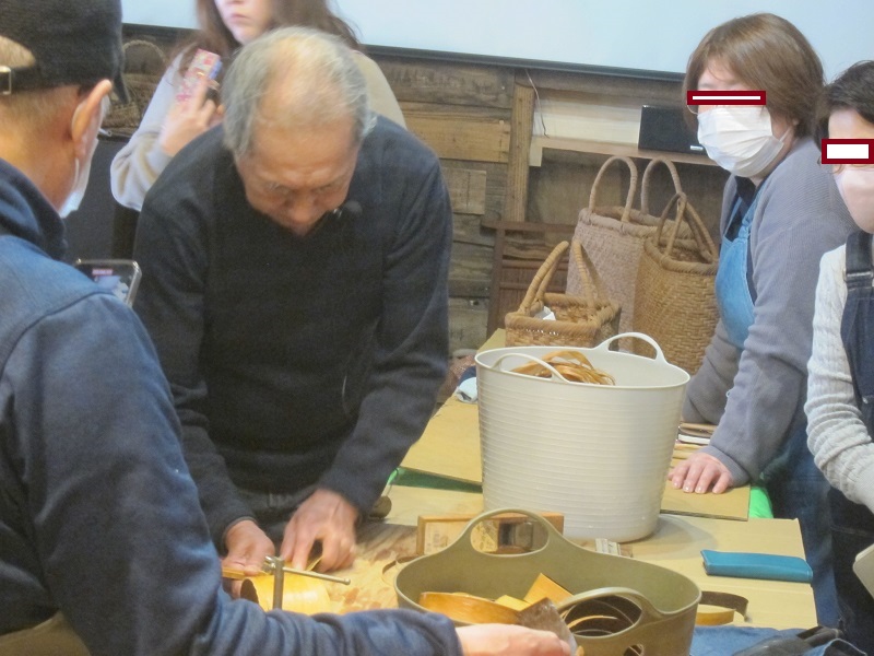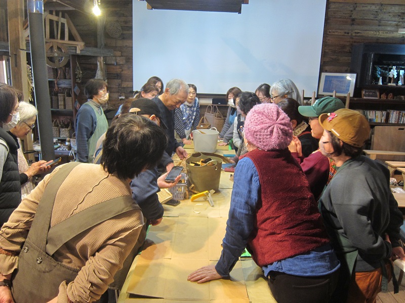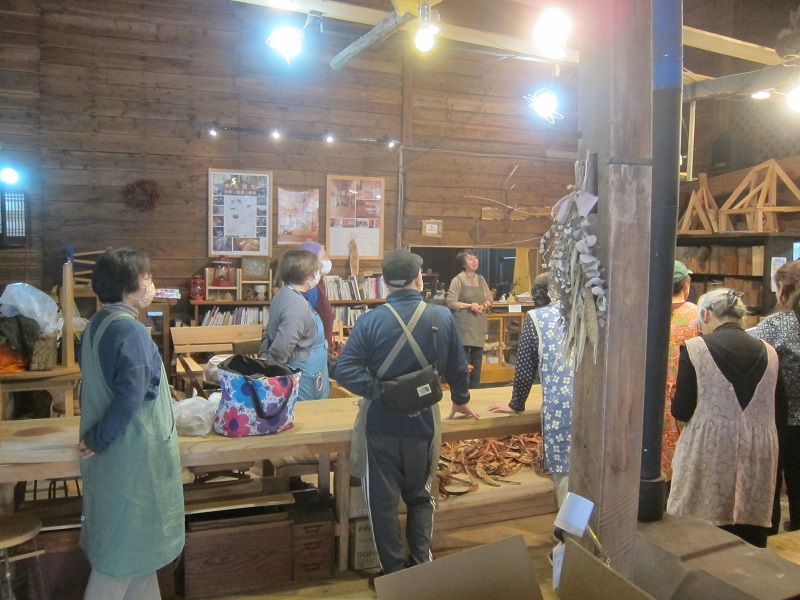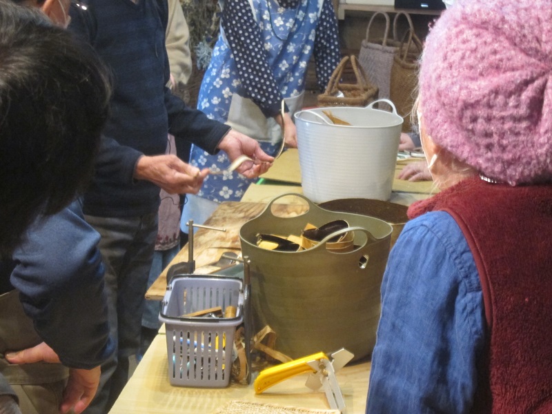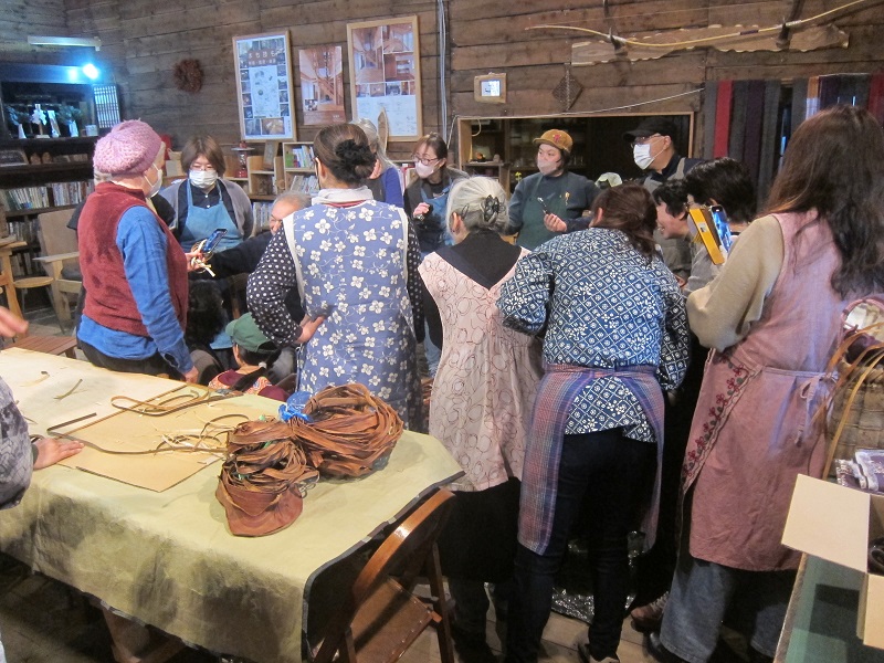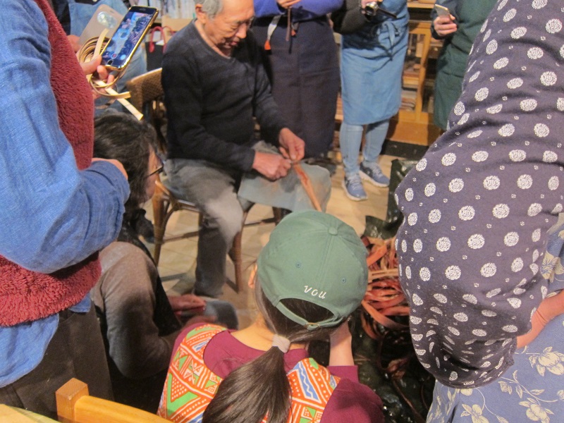 春が来て、木の店のワークショップも始まりました。先週は、カゴ編みの先生がご自身の先生を呼んで、樹皮編み用の樹皮造の仕方を教えてもらうイベントでした。20人が集まったので、駐車場も凄い車でした。とても勉強になったみたいでしたね。