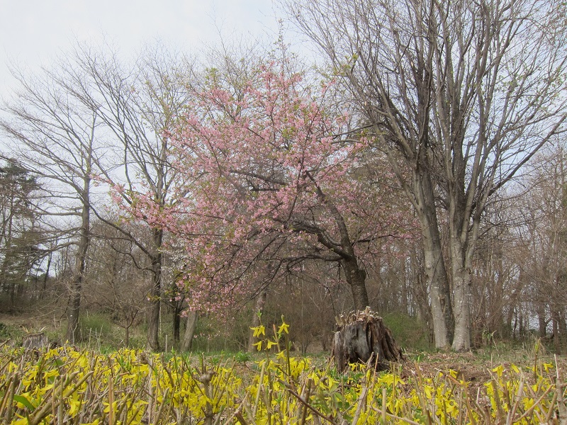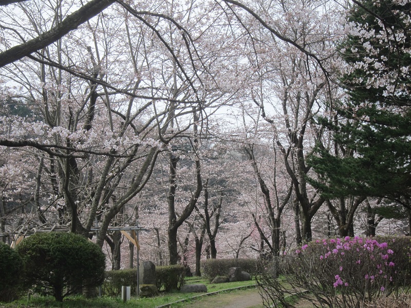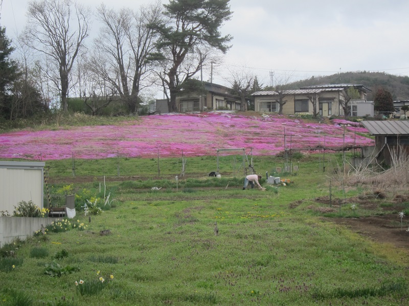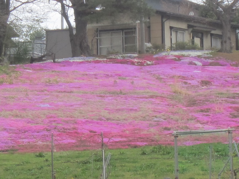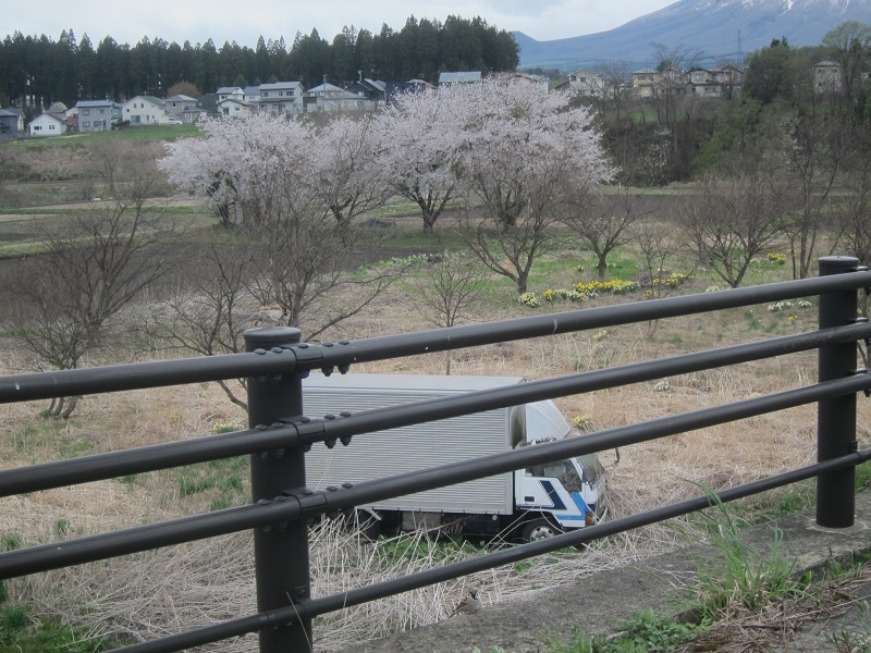 桜だけではなく、コブシや芝桜も見事な春本番です。そして、桜と岩手山も引立ちます同じ写真でも手前のガードレールの雀に違いがありますよ・・・