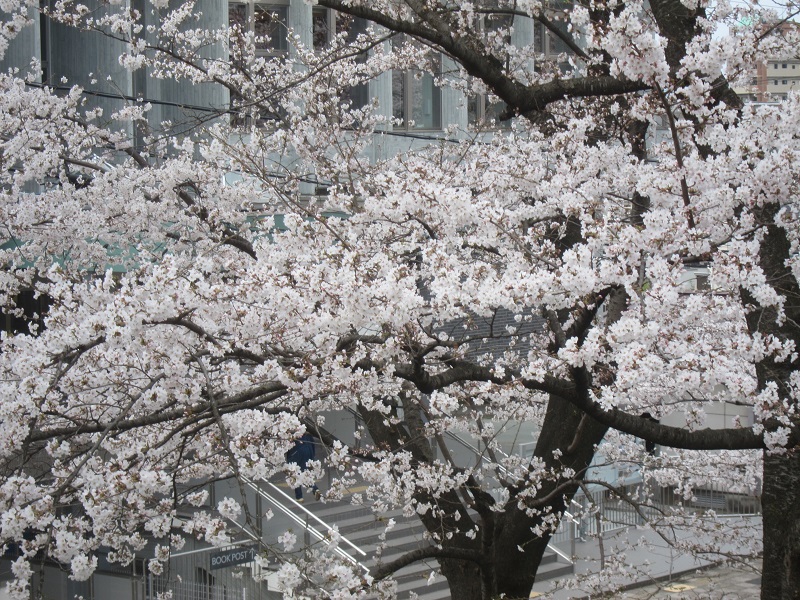 すっかり春本番で、街路樹も白・ピンク・黄色と色とりどり様々です。