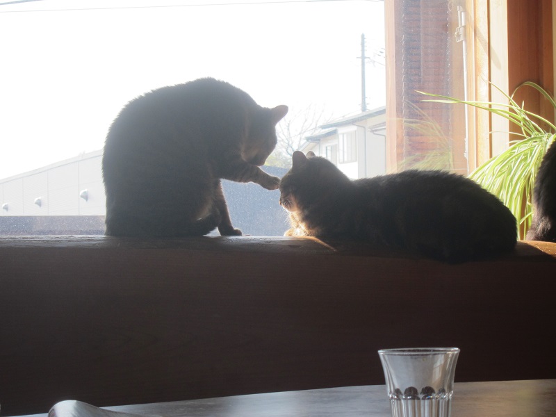 偶然の撮影ですが、猫が影絵の様な動きをした写真を写しました。