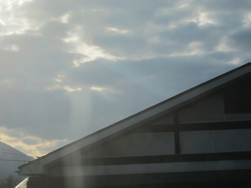 見上げた空に鱗雲と陽光の光線の差し込む雰囲気に雨が来るぞの知らせを感じました。秋空の話かと思っていたら春空も同様の様です。