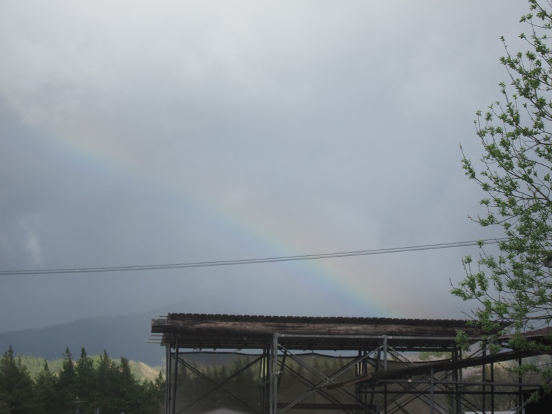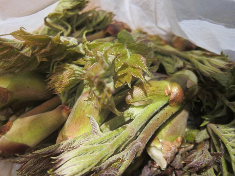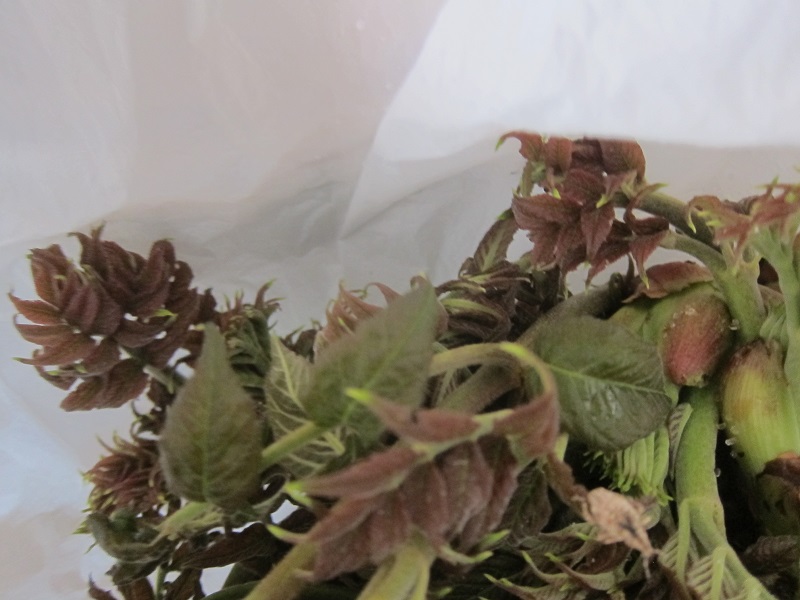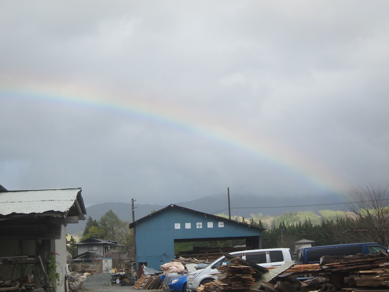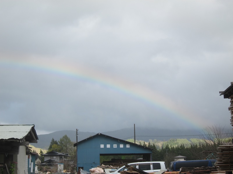 今日は雨が降ったり止んだりしていましたので、こんな日は東の空に虹が良く架かります。九戸の建具メンテナンスに行って約束とは言え有難くタラの芽を頂きました。感謝です。