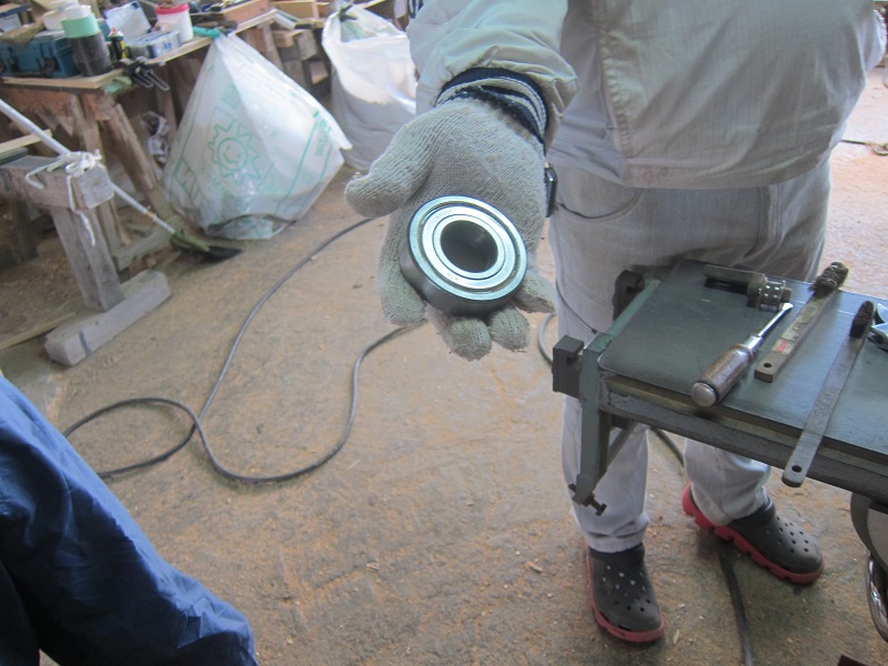 先日運んだ木工機械の修理点検を進めています。やはり、ベアリング交換などが必要でしたが、頼もしき専門職が何故か場内に常駐しているので、メンテナンスが無事進んで使える様になりました。