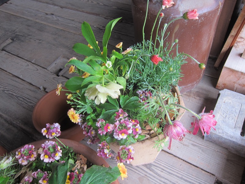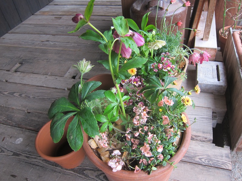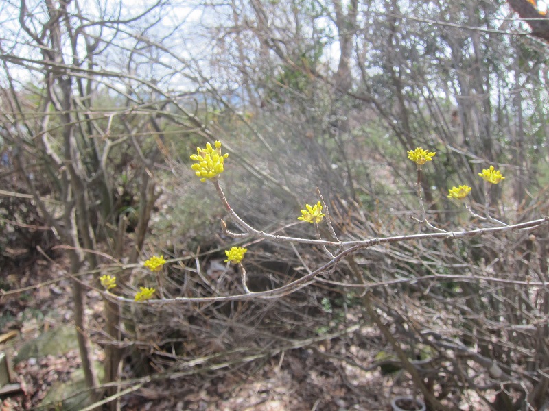 好摩の弊社裏庭のサンシュウユが満開で、梅も咲いてきました。小鳥も集まって来たので、春ですね。昨日の木の店では雨でしたがお花の寄せ植え教室が開催されていました。