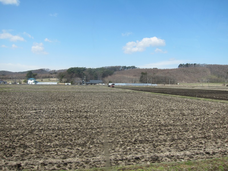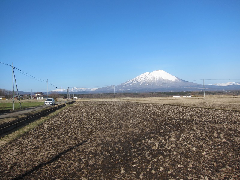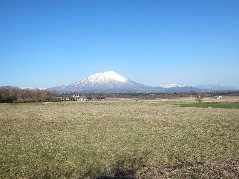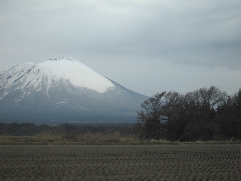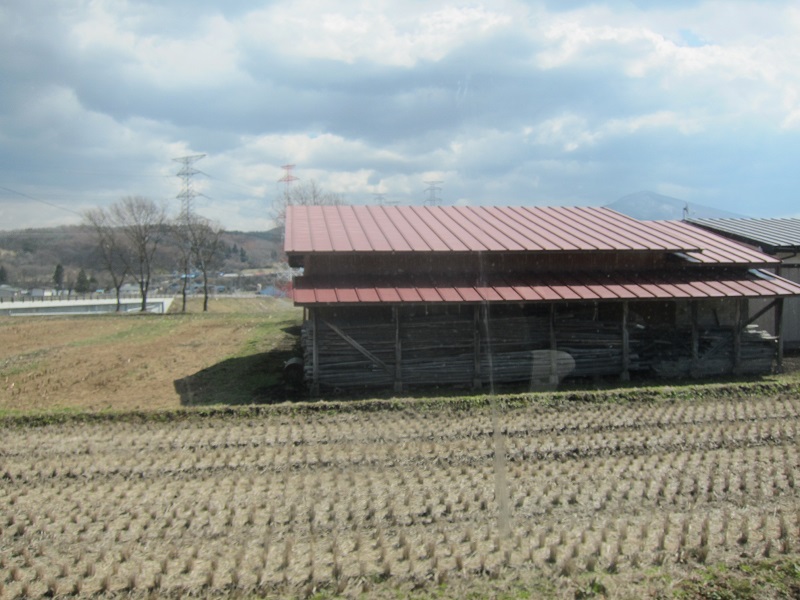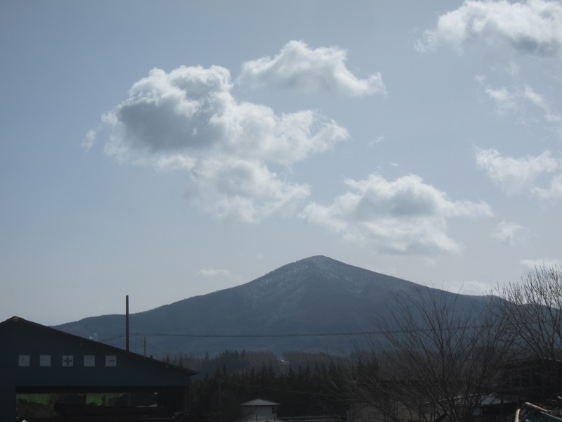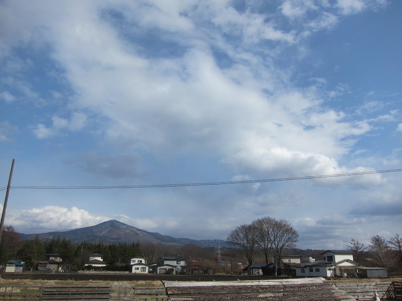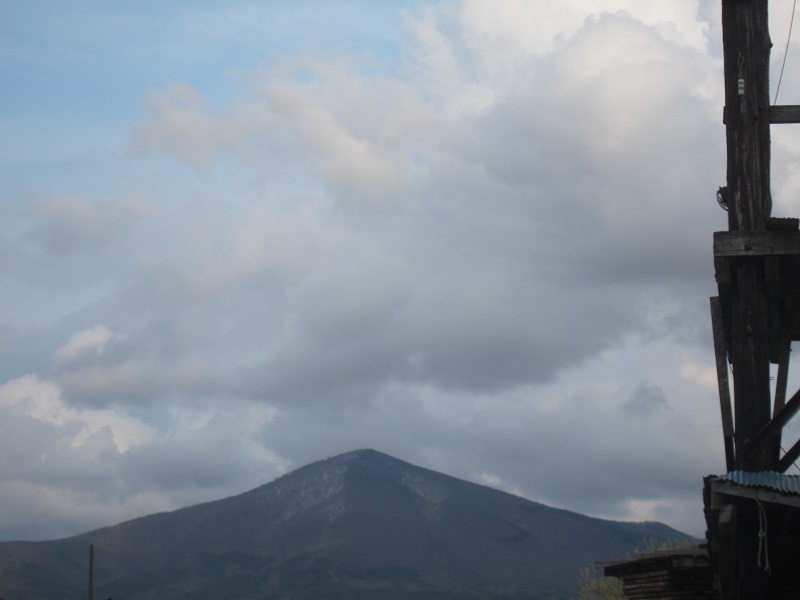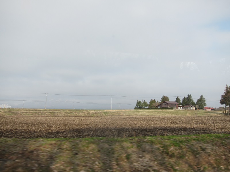 曇天の中に光る山が印象的です。長閑な風景が良いですね。