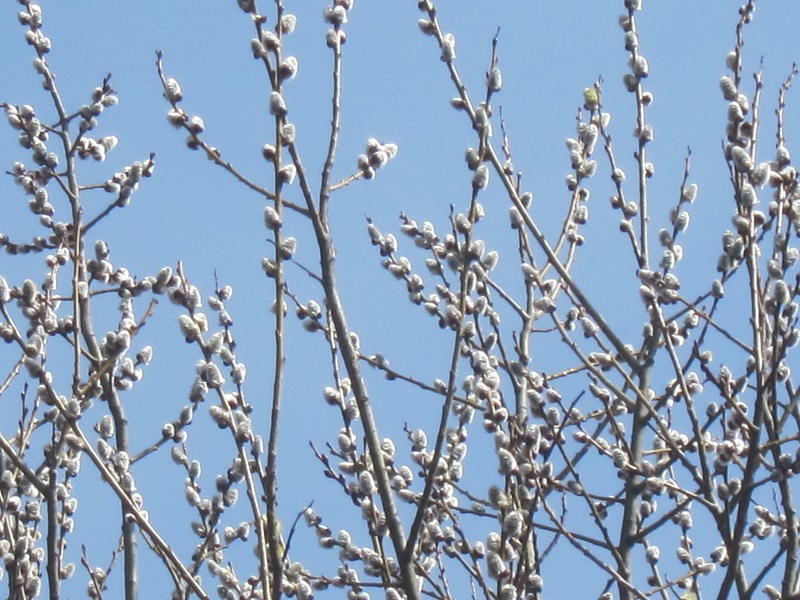 サンシュウユ咲く春の到来です。ネコヤナギも銀色に輝いています。そして山も美しく、今日から卯月4月です。新年度を迎えました。