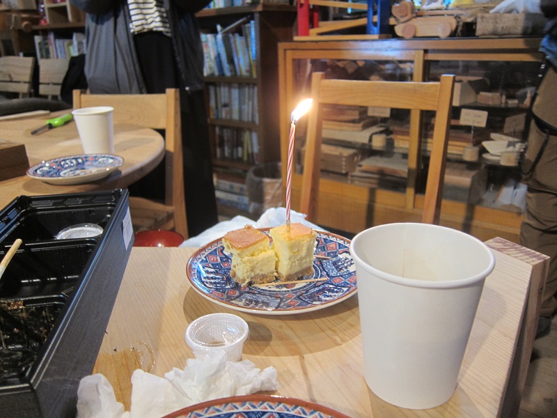 年度初めの大集合で本日新卒社員一名の入社式を行いました。その後は昼食会でした。そして専務のお誕生日お祝いです。