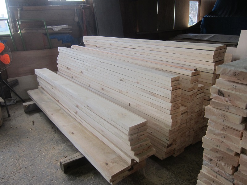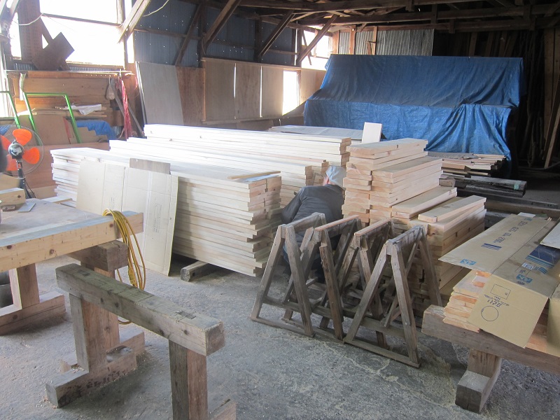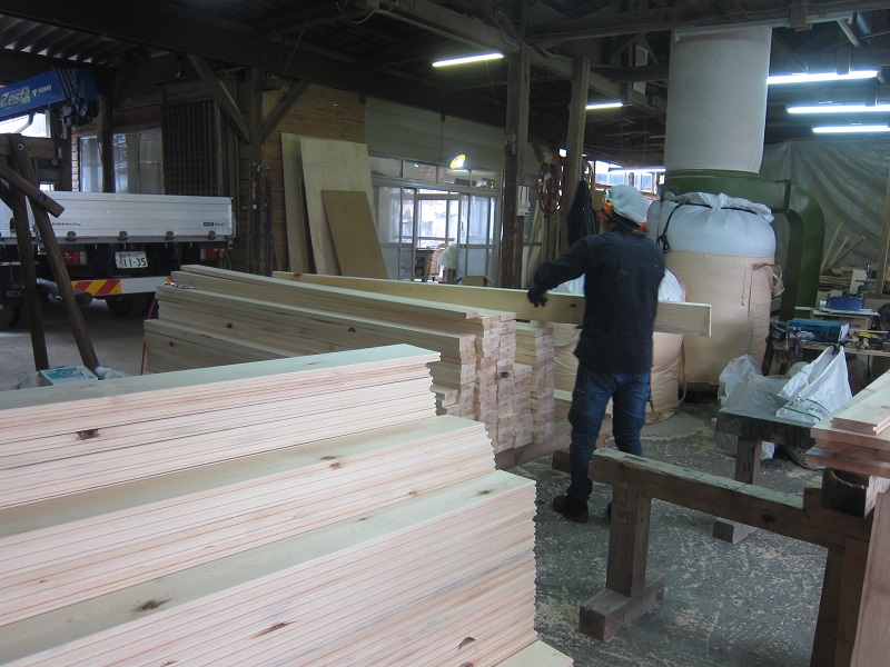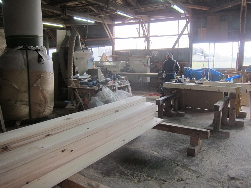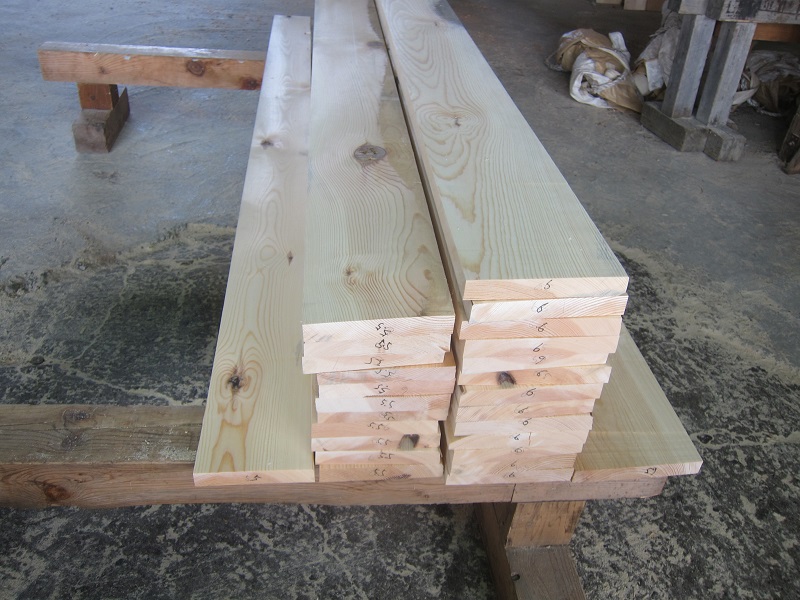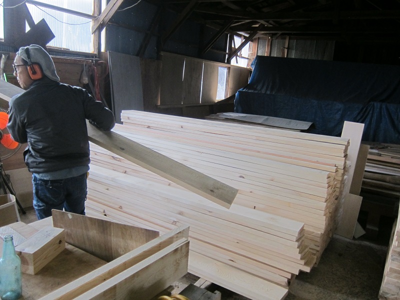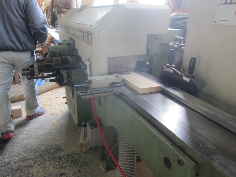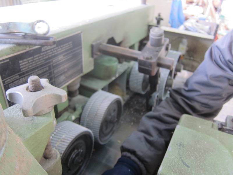 先日まで、面付き板材の耳の切り落としを行っていましたが完了して、いよいよモルダーの自動四面鉋掛けに取り掛かります。とても複雑な機械なので、機械の調整がそれなりに必要です。今日は、その調整の様子を写真で紹介いたします。