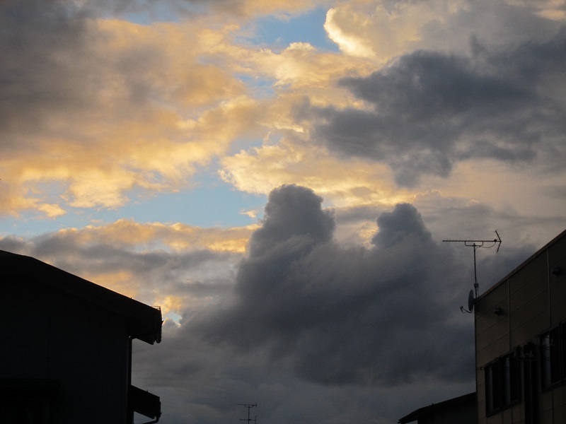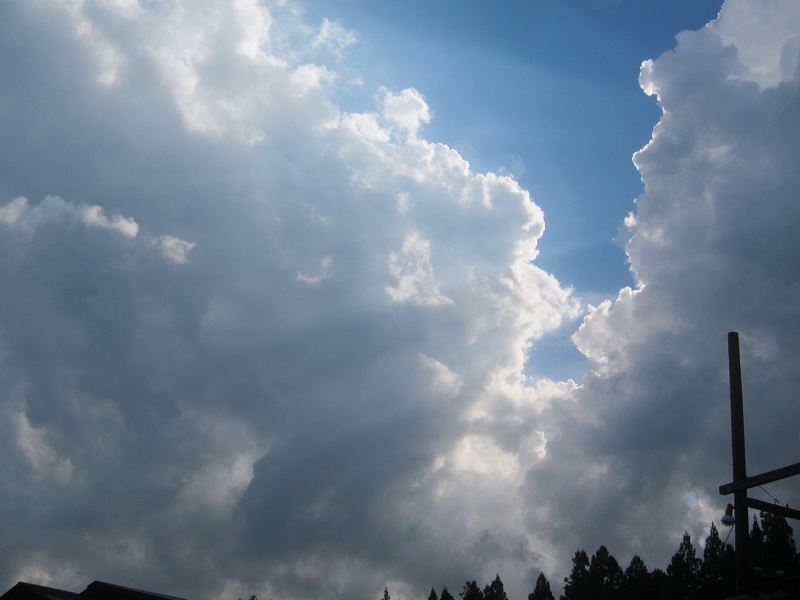 昨晩は雷鳴轟き稲光の怖い空に変貌しましたが、その前は猛烈な暑い空でした。
