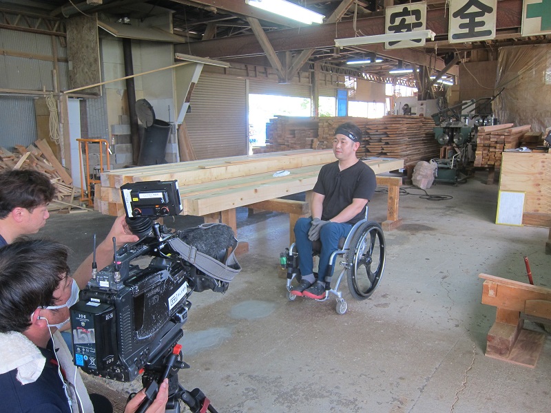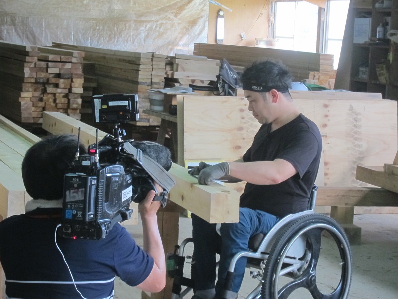 車椅子ハンドボール日本選手の車椅子大工大和田洋平の仕事ぶりをテレビ岩手さんで取材撮影にいらっしゃいました。実は私も突然マイクを向けられてしまいましたので、8月19日夕方18:15からののニュースプラスワンいわてにて放送される予定です。