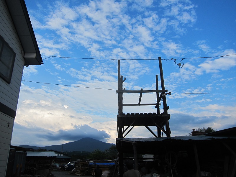 写真は、昨日の好摩の櫓と青空に白い雲です。弊社は明日11日から18日までの一週間お休みとさせて頂きますので、この日記もお休みですが、山羊の面倒を見に好摩に来た時のタイミングで書く事もあるかもしれませんので、その時はよろしくお願い申し上げます。
