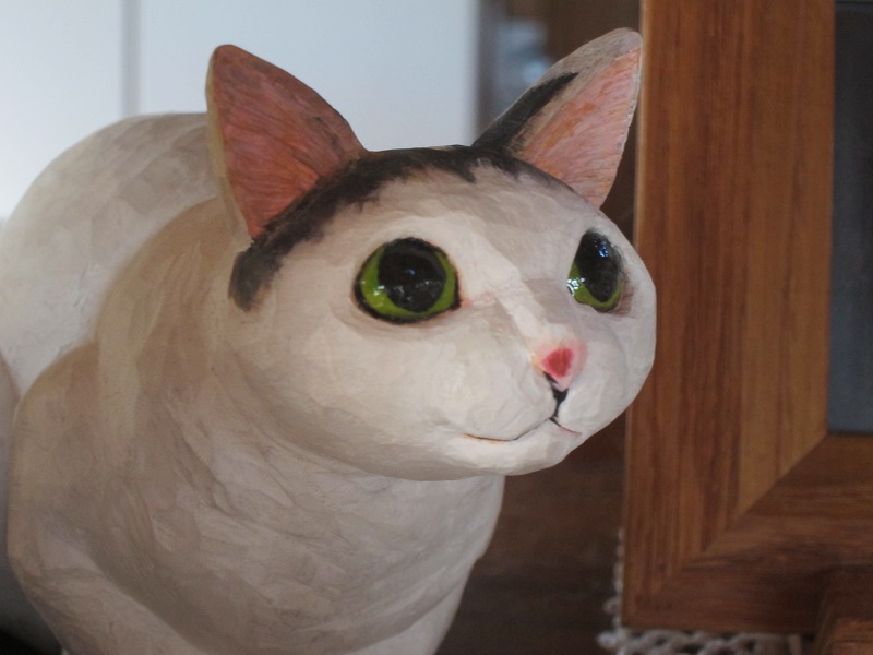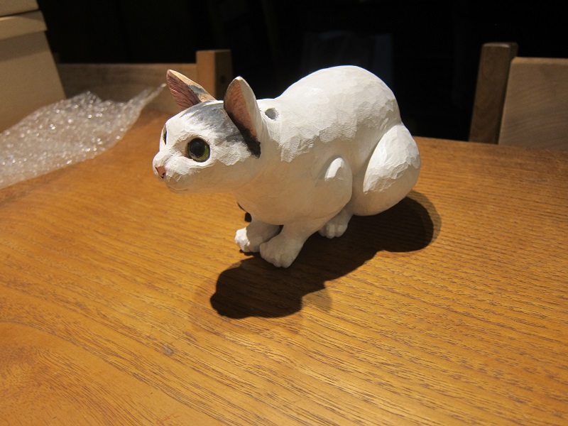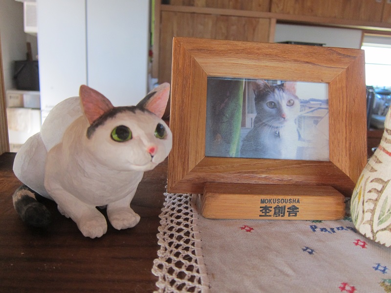 クマさん工房の熊谷奈央氏に8年前に死んでしまった。自宅で飼っていた三毛猫の「ハナ」の写真を渡して想い出木彫りと称して生きていたころとそっくりに木彫り造りして貰いました。専務はとっても喜んで、涙をにじませながらいつものように撫でていました。私も感動して目尻に伝うものを感じました。9月23日にこがねパーク高松公園にて動物愛護フェス2024が開催されますので、当社でもブースを1枠申し込んでおります。クマさん工房も共同出店しますので、宜しければお越しください。