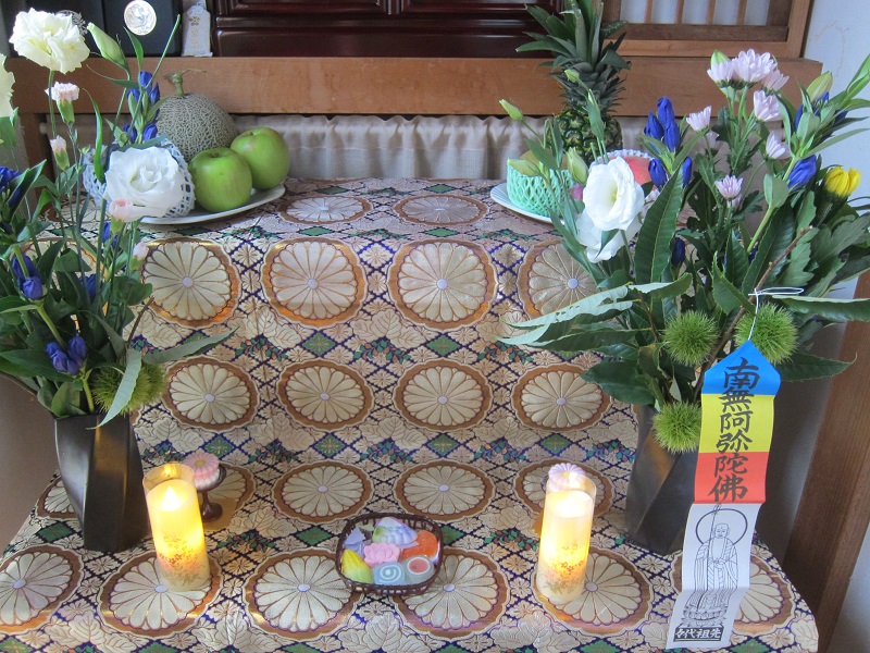 長いお盆休みを頂きましたが、今日から通常業務再開です。建築業界に染みついた風習で人が休んでいる時に率先して働くと云った感覚が過去にはありましたが、今では確りと休むという事に馴れてきました。お盆休みは迎え火を焚いてご先祖様をお迎えする日本の習わしは確りと受け継いでいます。台風もすさまじく故郷岩泉を直撃して、お墓参りに向かう道中の道で給水車を見掛けたり、龍泉洞から出て来る水量の多さも直接観てきました。休み中でも山羊の元気な姿を見に来たり、突然のゲリラ豪雨に慌てる休み前半でした。お盆の祭壇には栗カッツァが付いた栗の小枝を飾るのが岩泉町で育った当家の風習です。